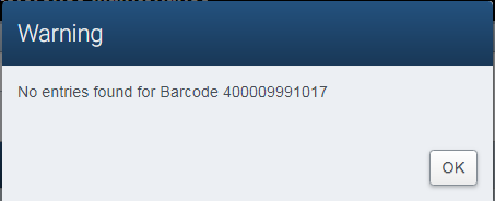 If a value is entered in the Barcode search criteria, it appears in the dialog.