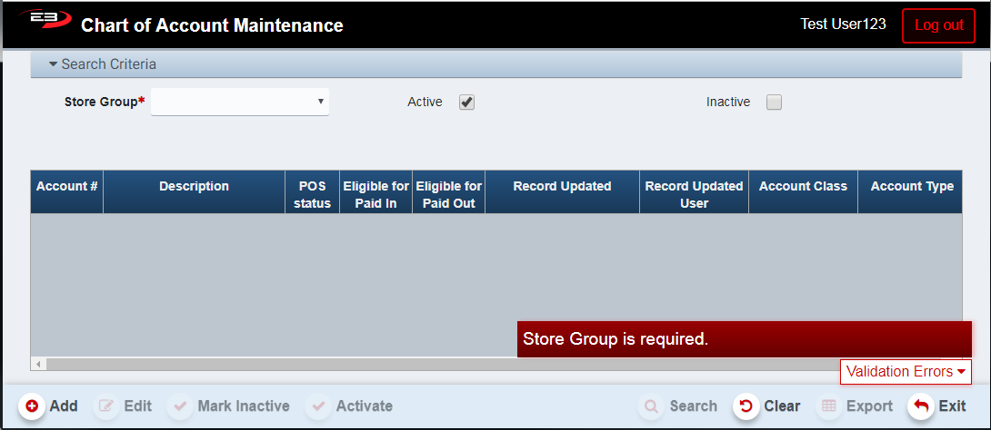 Check the Active option to see all active accounts, this is the default setting.