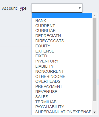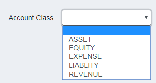 Account Class - the account class is selected from the following control when adding or editing: