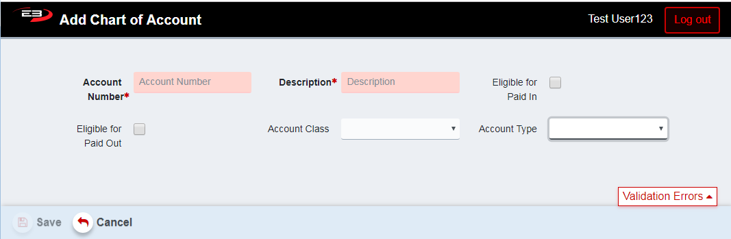 When the account has been saved, the Account Number field is no longer visible and can’t be changed.