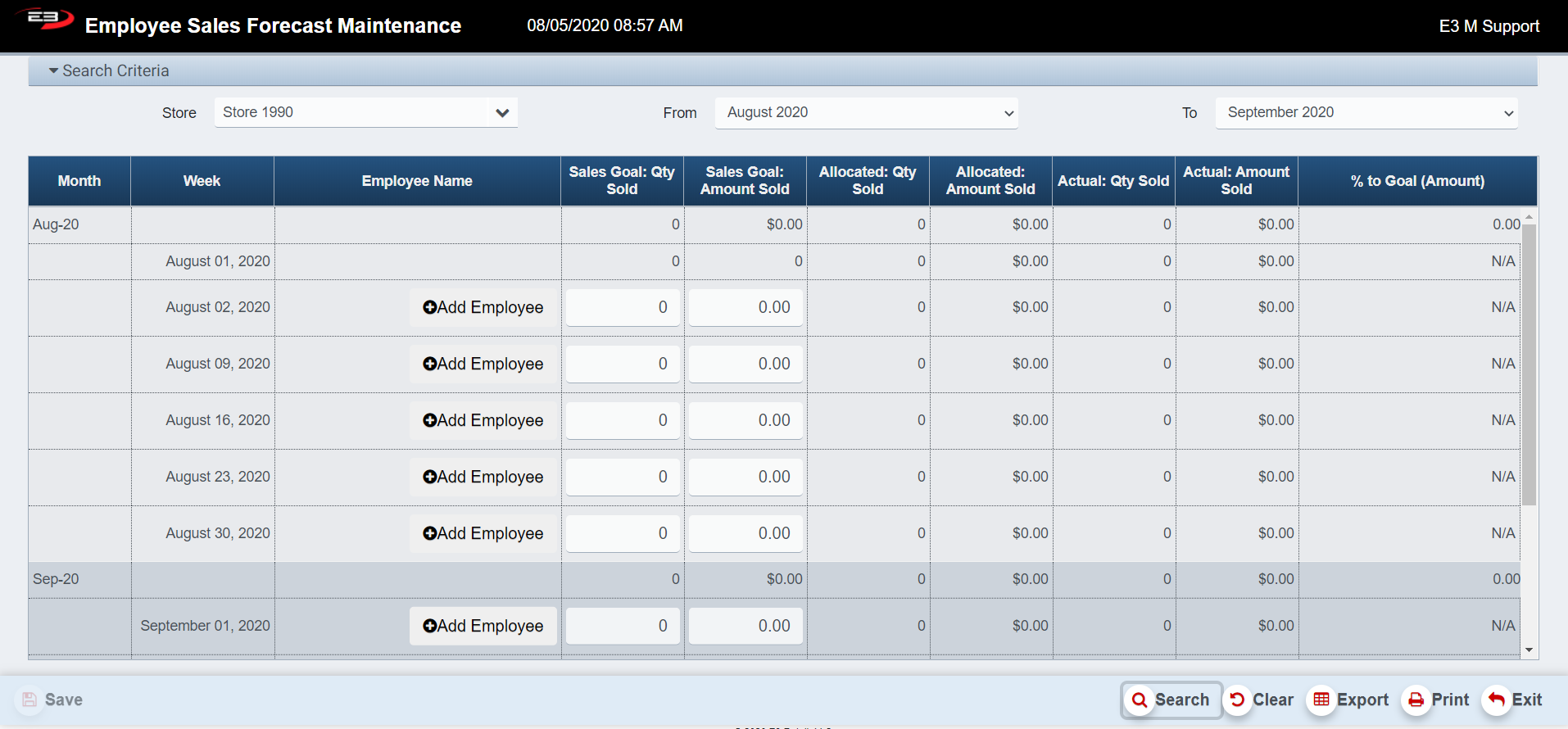 From the Operator Management / Reports menu, select Employee Sales Forecast Maintenance.