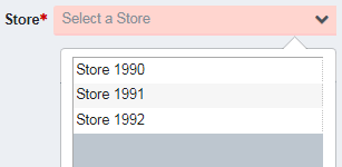 The Store value is required, only one store may be selected from the user’s store visibility list.
