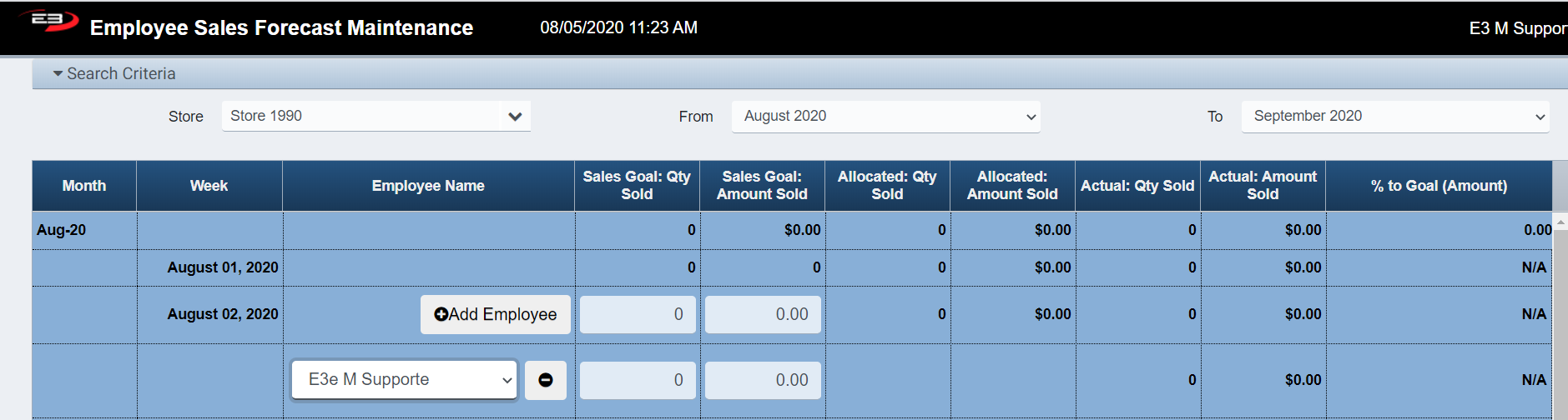 Employee sales goal data is added on the Initial Main Screen shown previously.