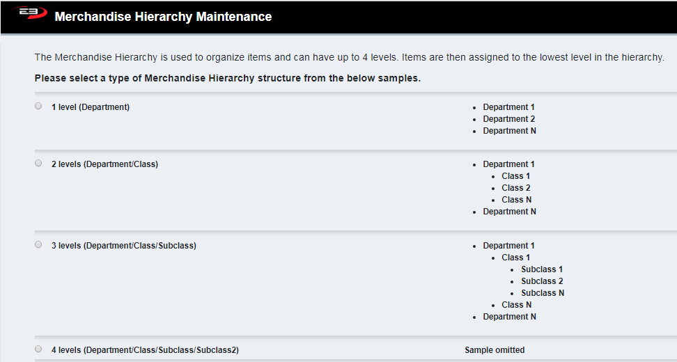 Select the Merchandise Hierarchy type by clicking one of the radio buttons on the left.