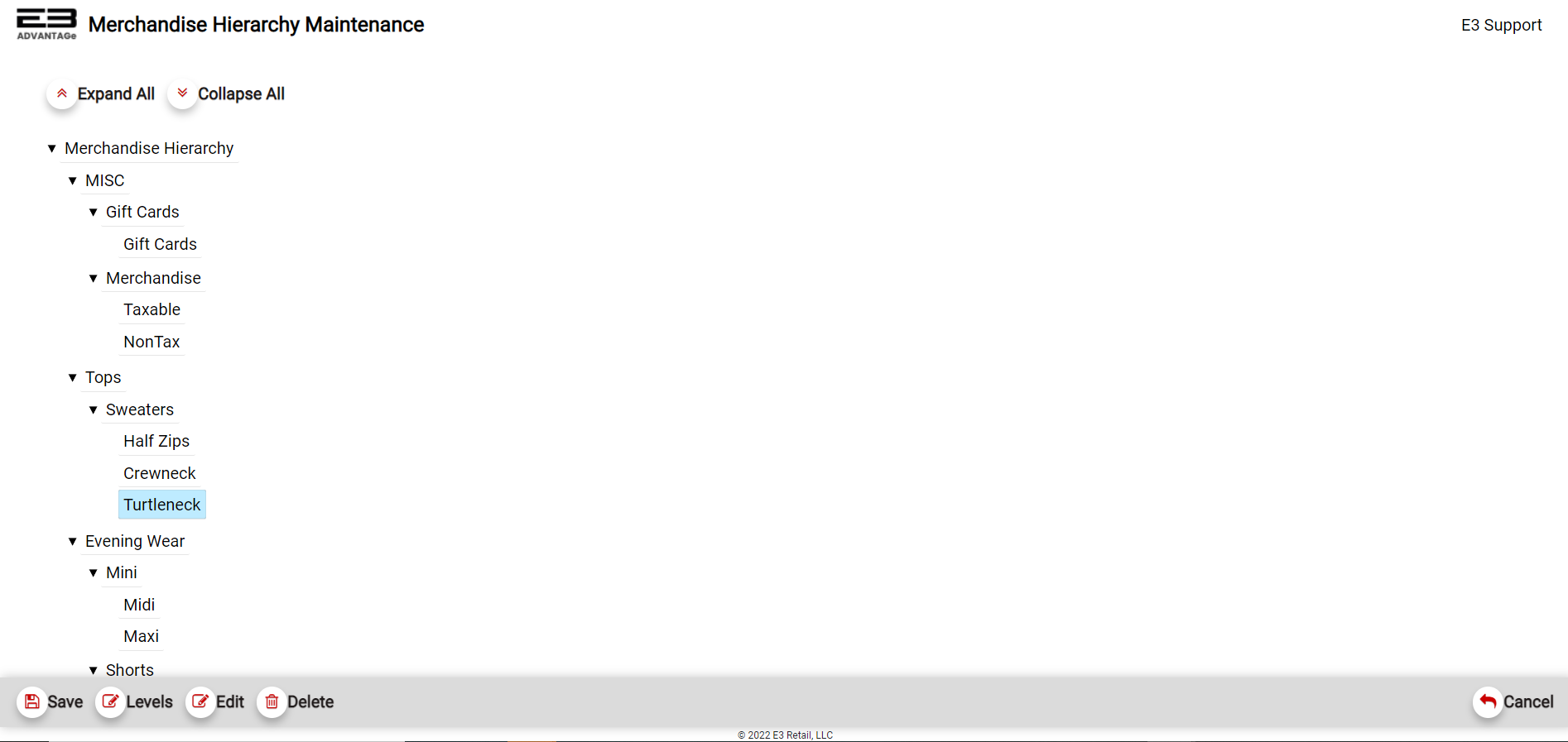 Click Expand All to restore the Merchandise Hierarchy to its fully expanded state.