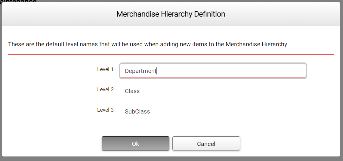 Selecting the Merchandise Hierarchy root will add a Level 1 node plus Level 2 and Level 3 “children”.