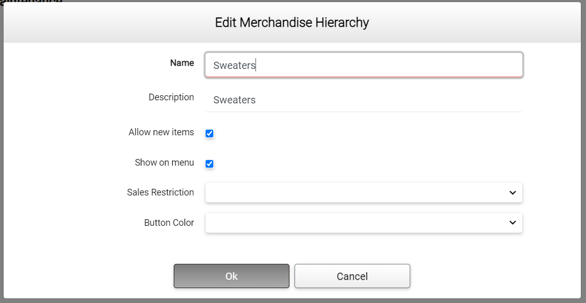 When the type is selected, a new and empty Merchandise Hierarchy will be created.