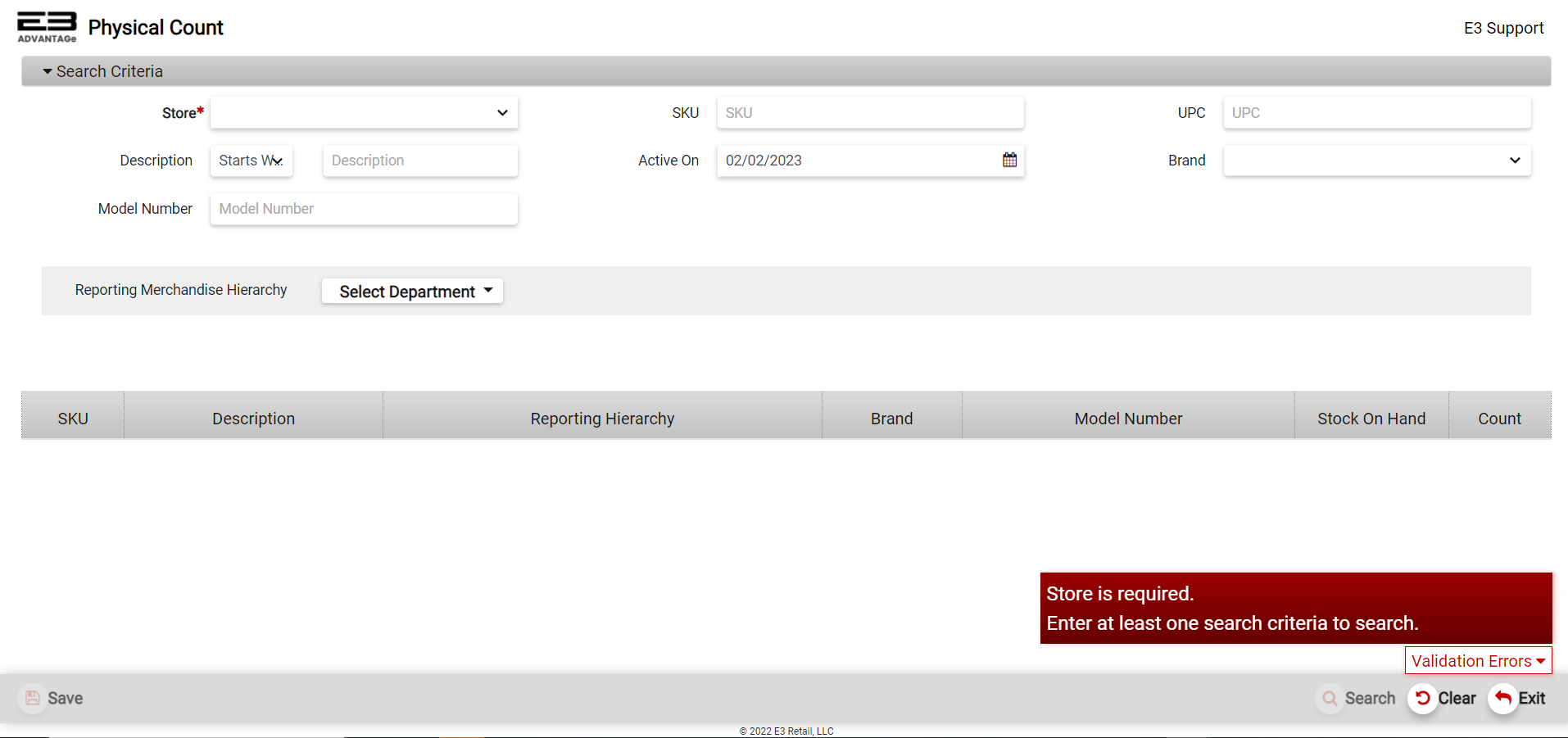 The Print function allows the user to save the report as an Acrobat PDF file for viewing/printing in Adobe Acrobat Reader. Once you have a result set that’s filtered as desired, click the Print button. The file is saved as PhysicalCount.pdf in the default location, typically the Downloads folder for the user.