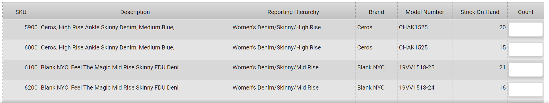 Click in the Count field for the item whose physical count you wish to update and enter the new item count.