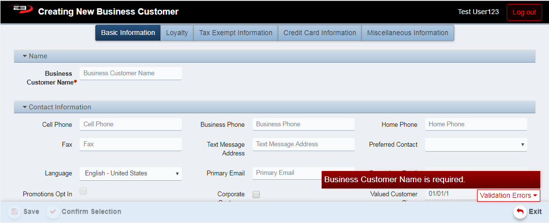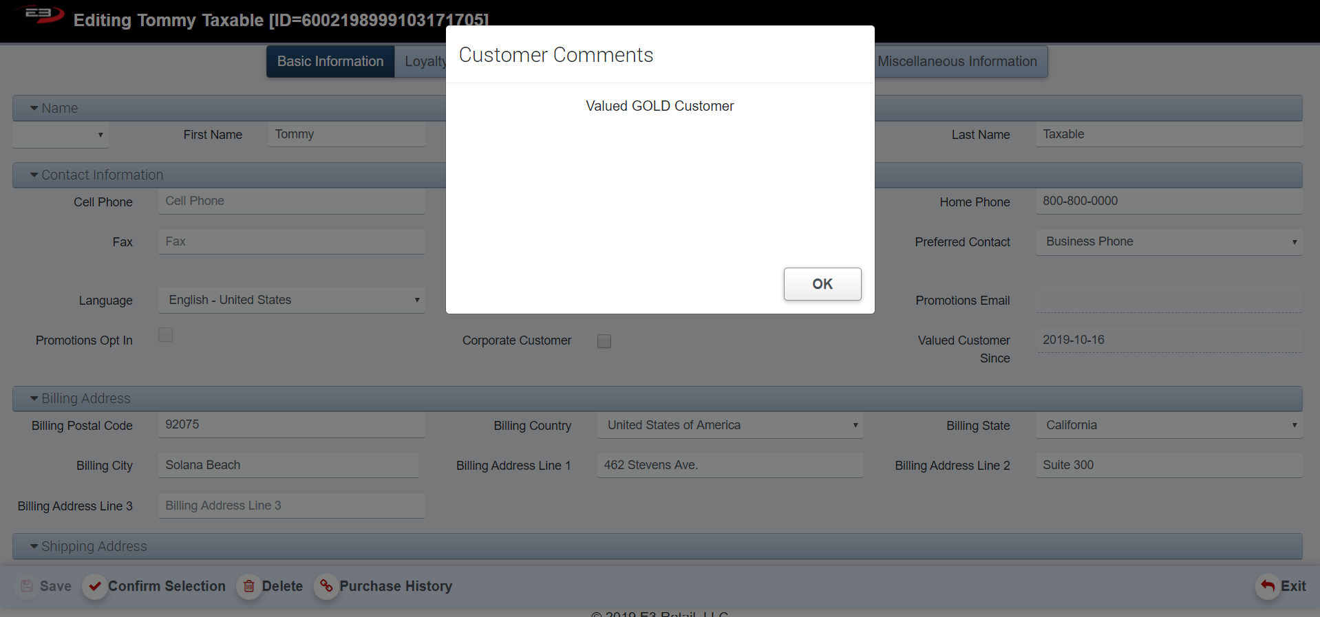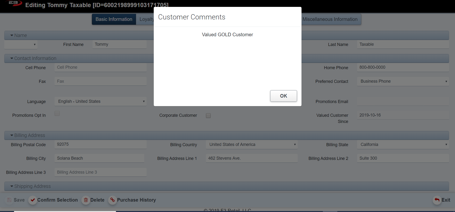 Select Confirm Selection to proceed with adding a customer to an item.