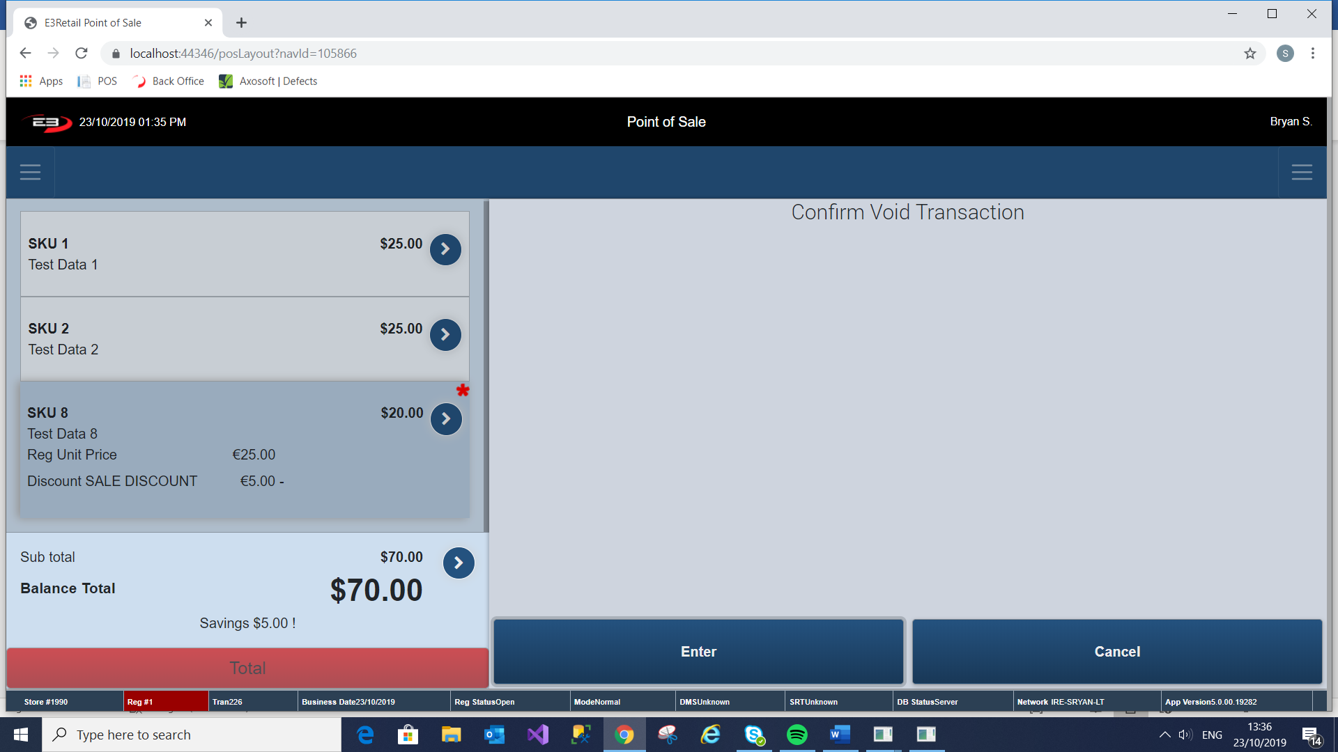 To Confirm the void on the transaction, click Enter.