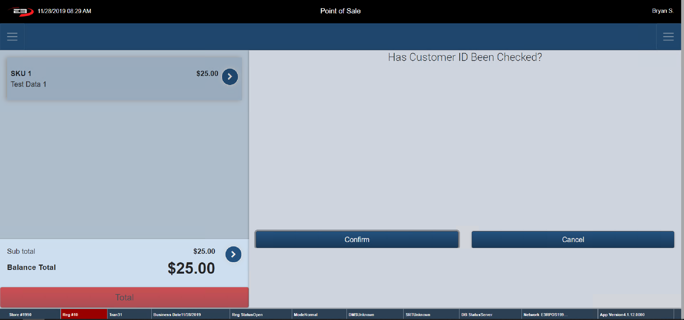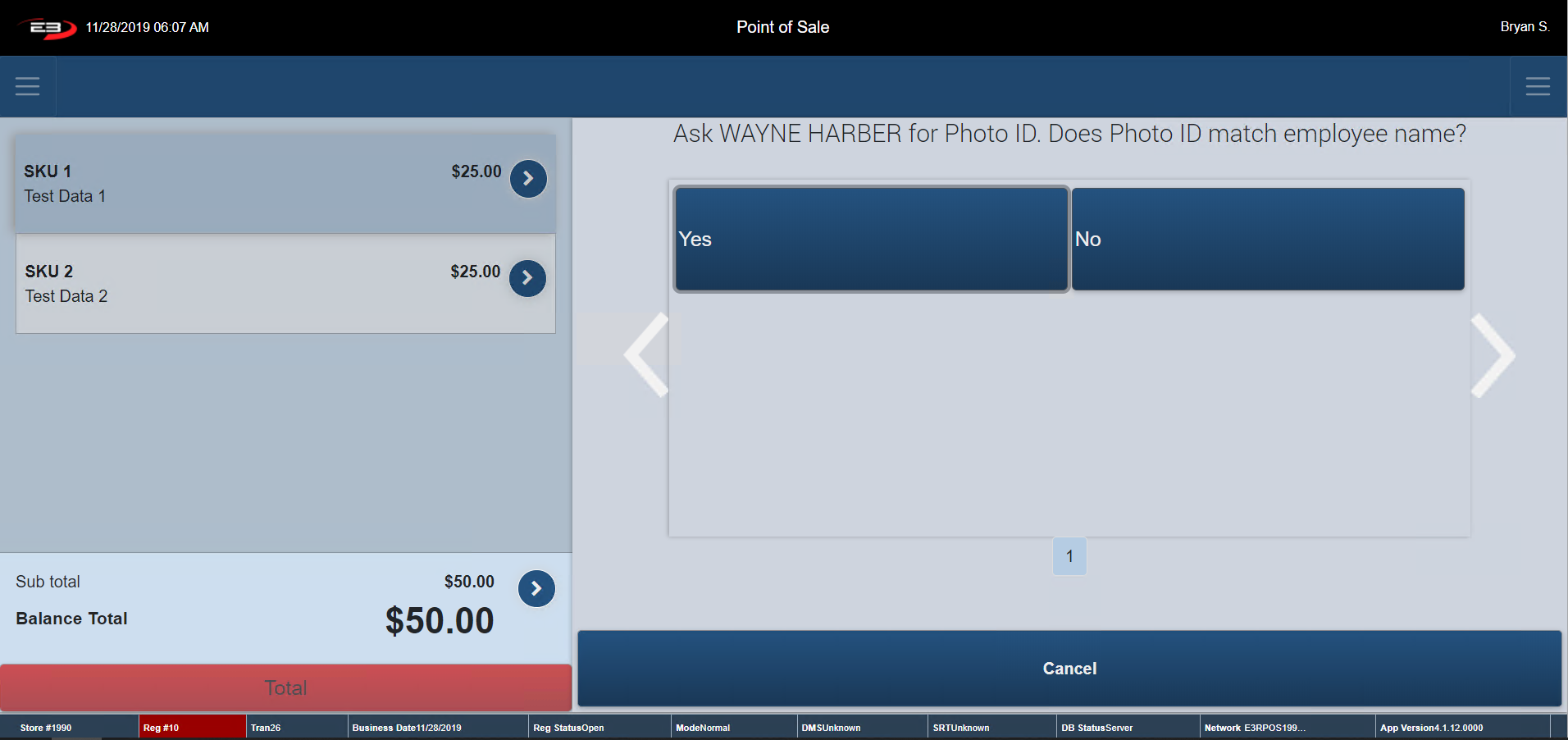 Click No if the ID does not match. The register returns to the Item Entry Screen with no discounts applied.