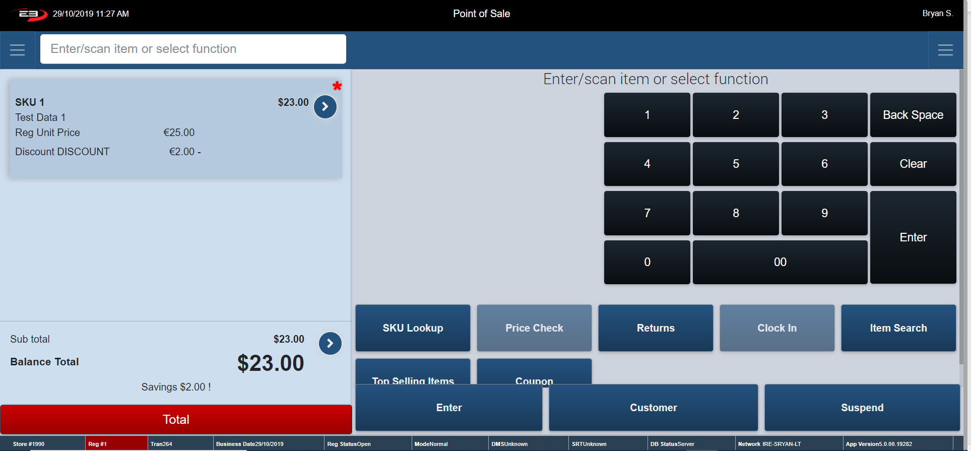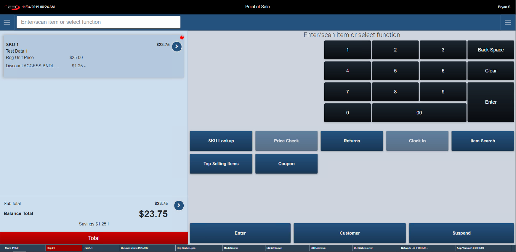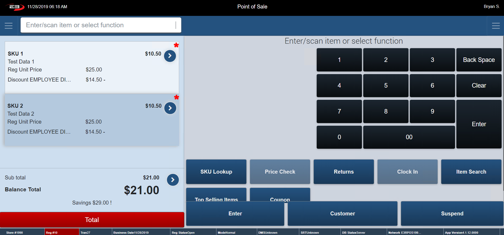 The register returns to the Item Entry Screen with the employee discount applied on each item in the transaction.