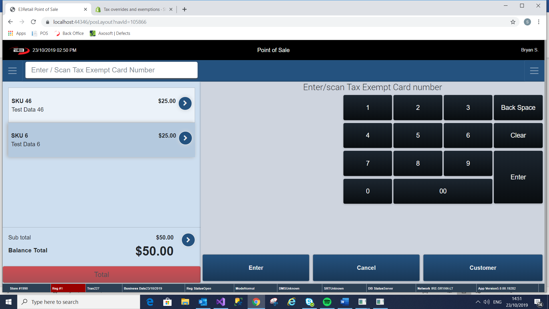 If the customer accepts the terms and conditions the register returns to the Item Entry state, with the tax removed from the transaction.