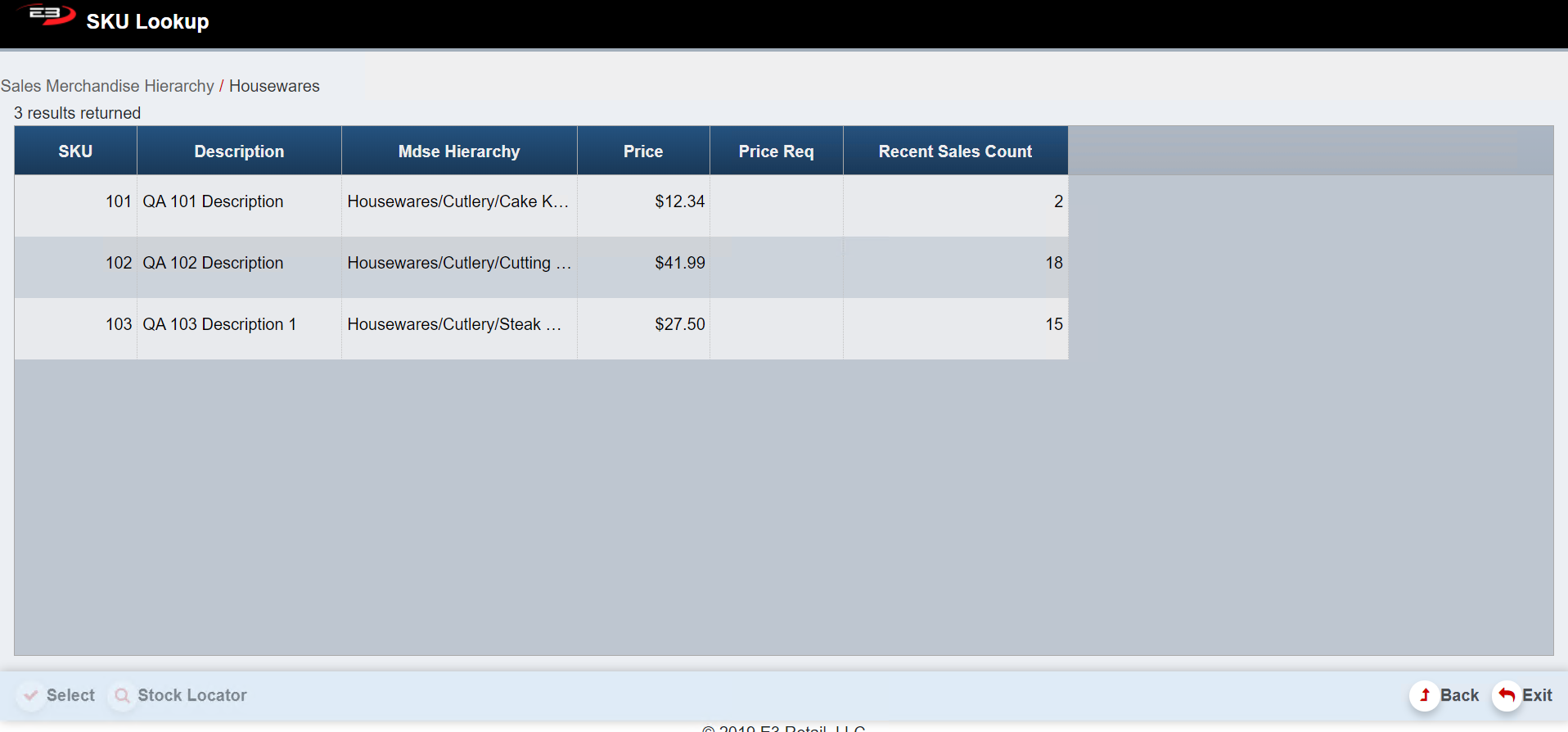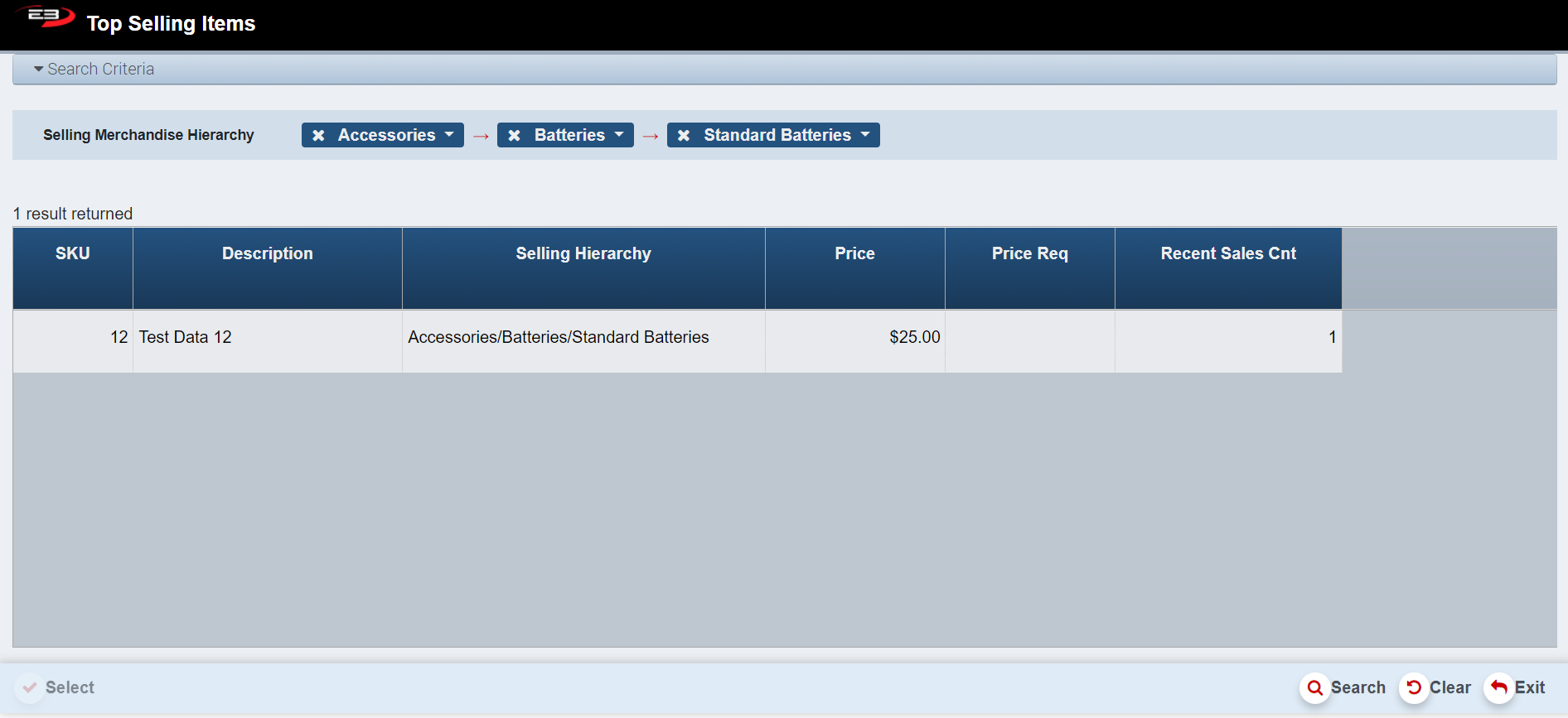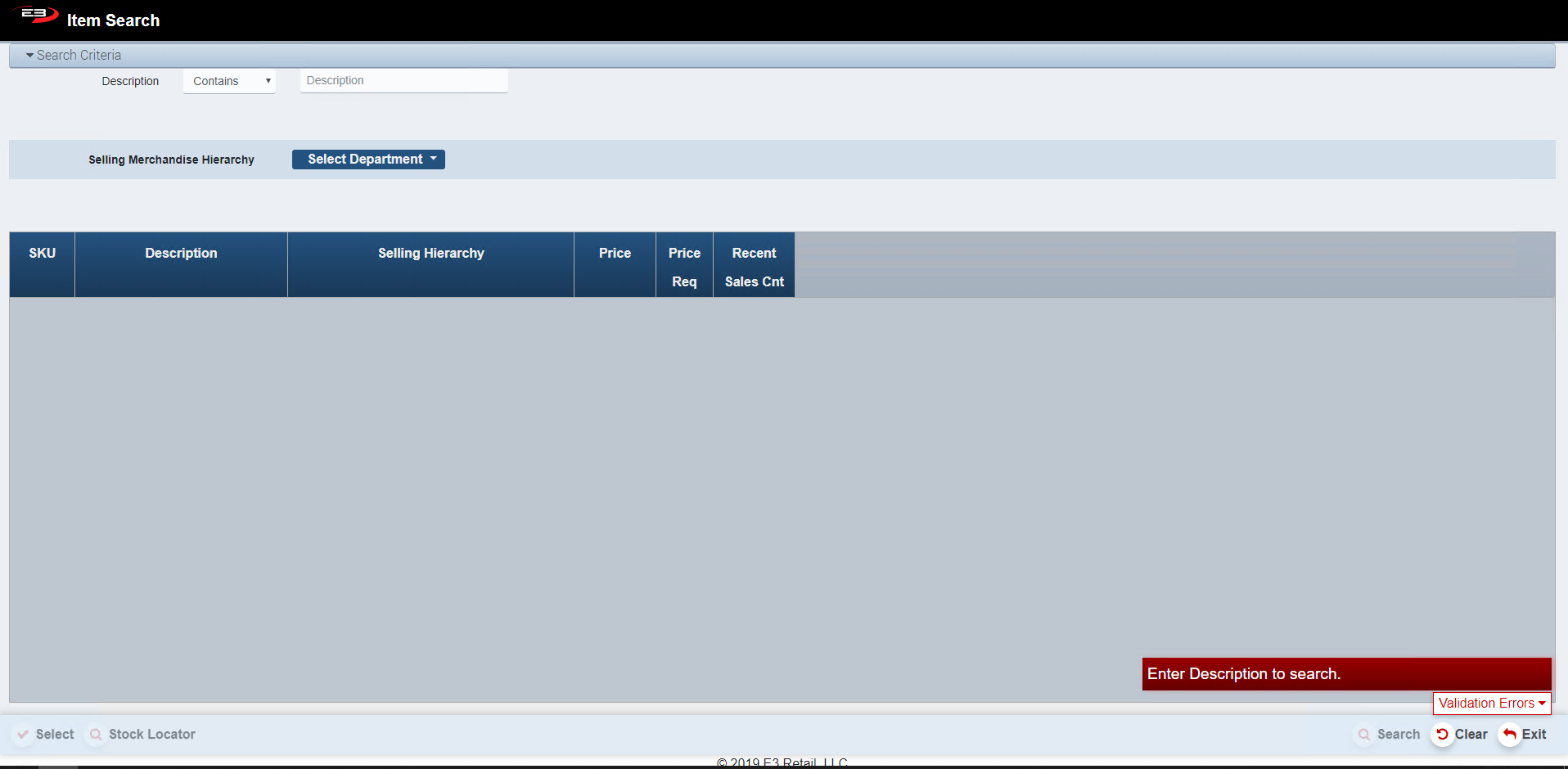 SKU Lookup lets you search for a Stock Keeping Unit (SKU) using a Sales Merchandise Hierarchy.