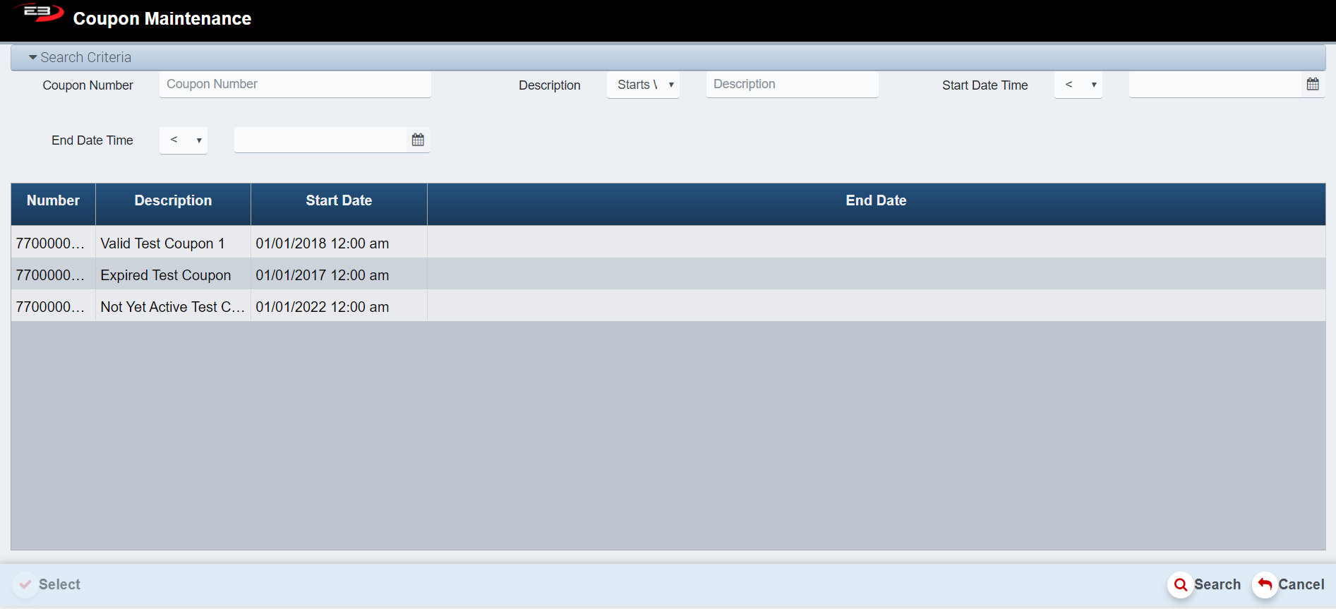 Highlight a specific item to enable the select button. Click Select, the register returns to the Item Entry Screen where a transaction can take place.