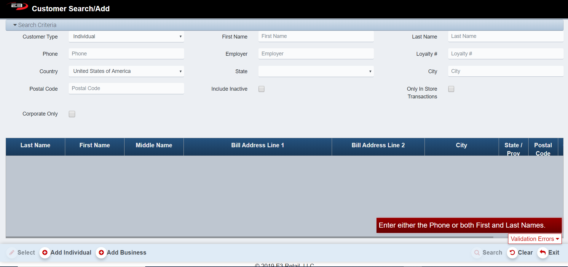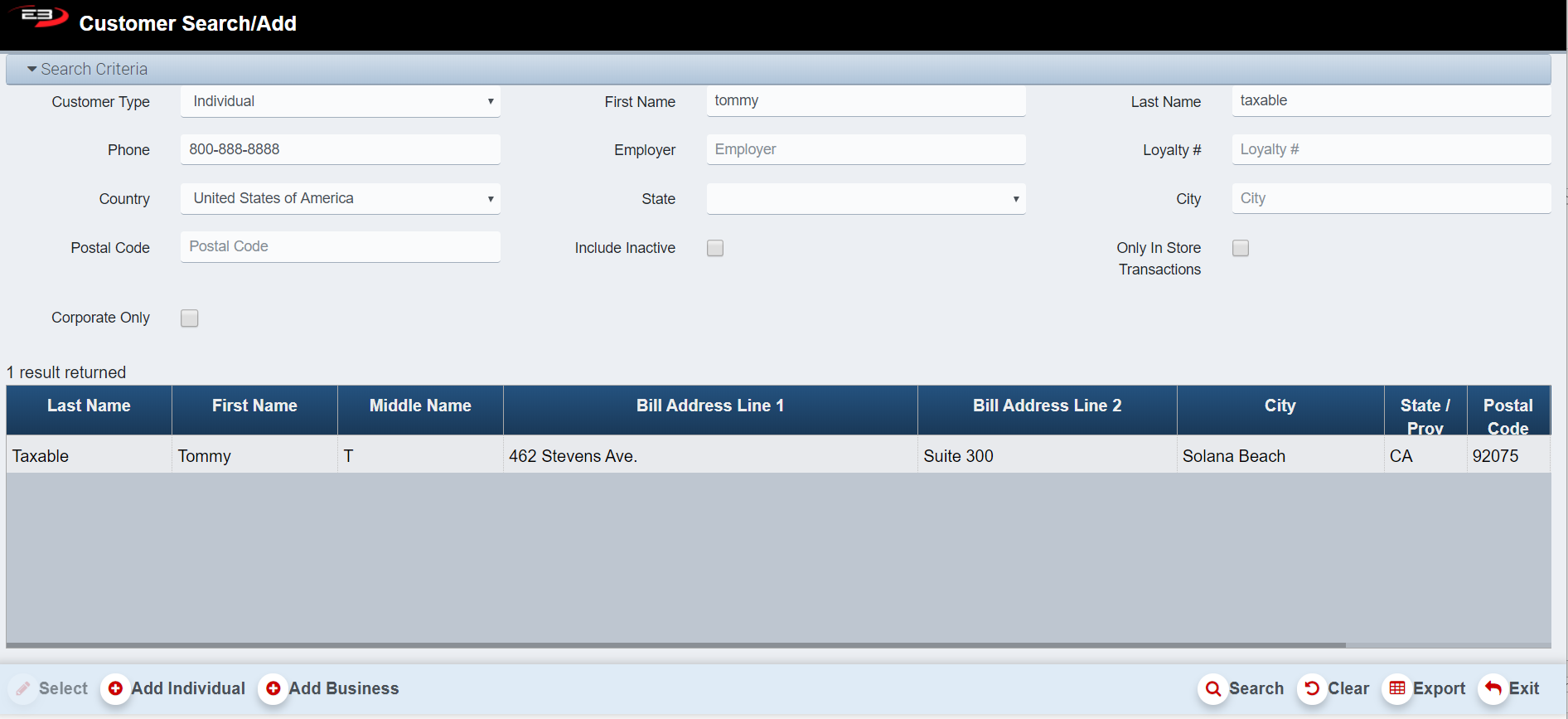 The amount of customer information added to the search screen determines the results given.