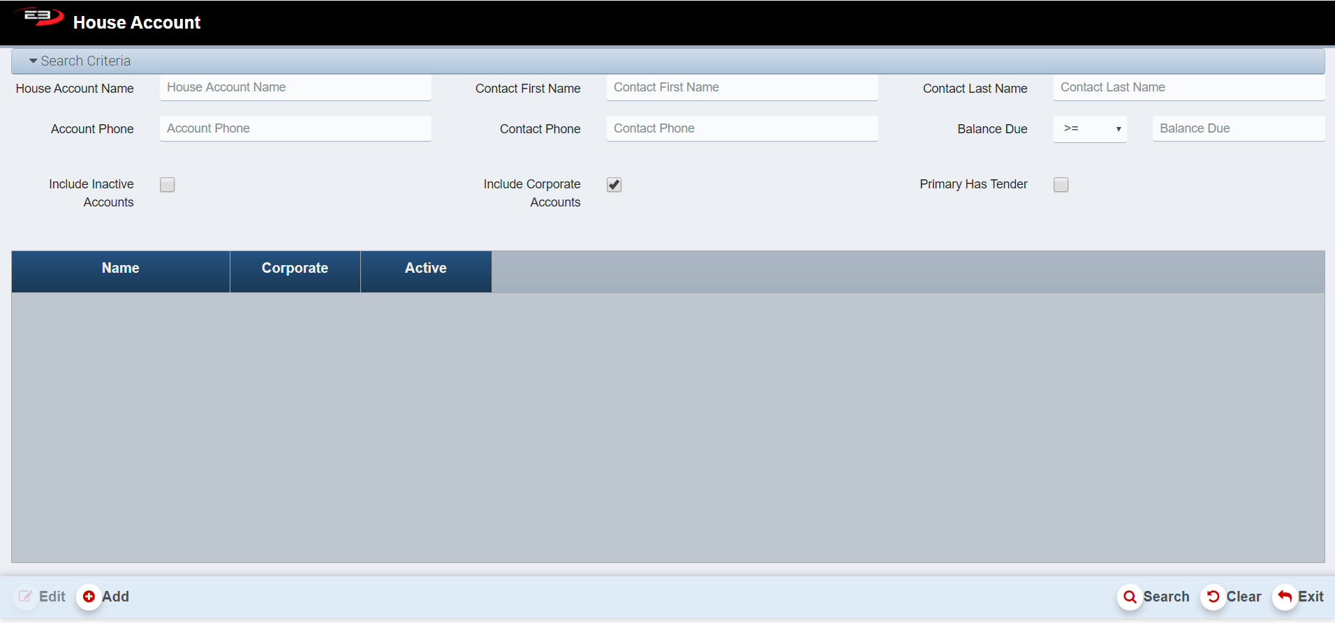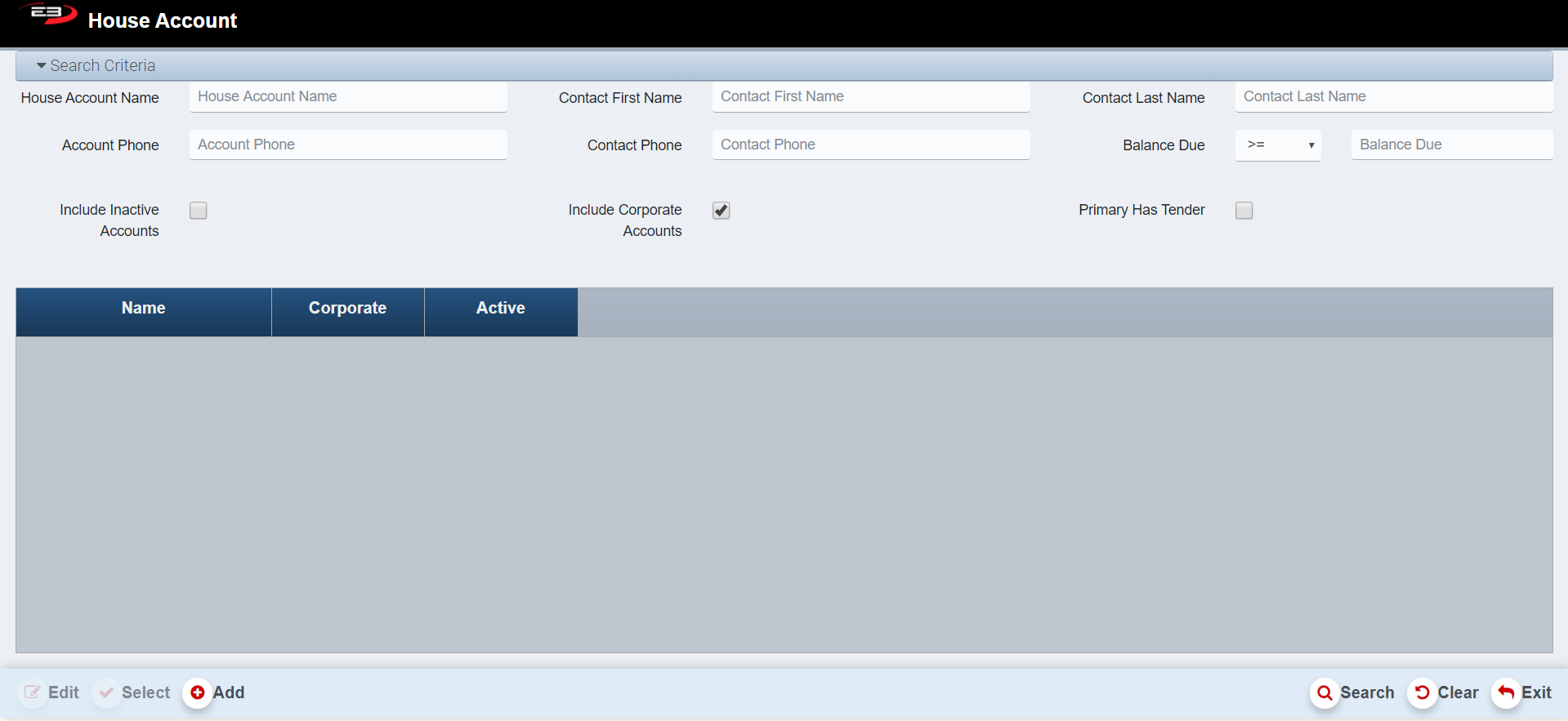Enter in the House Account Name and click Search.
