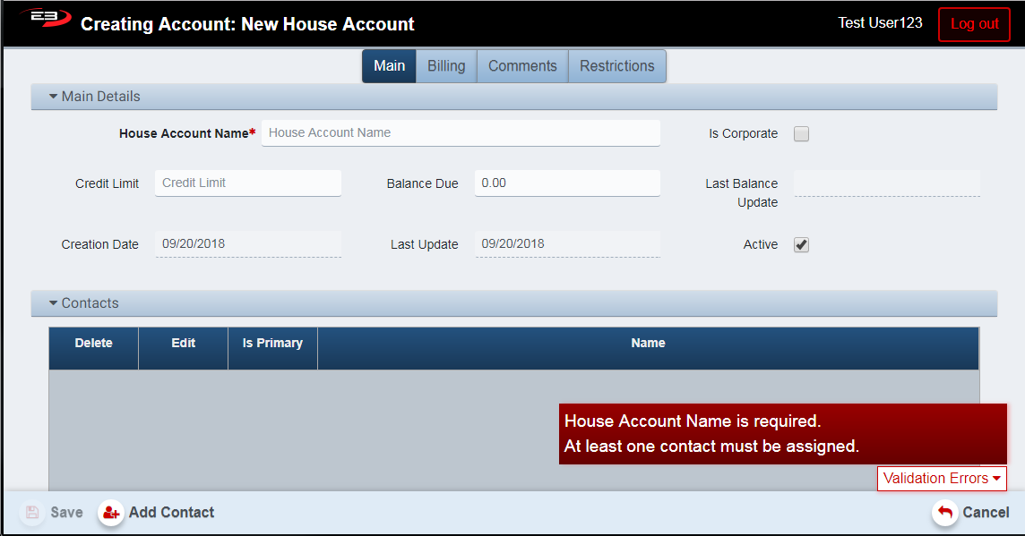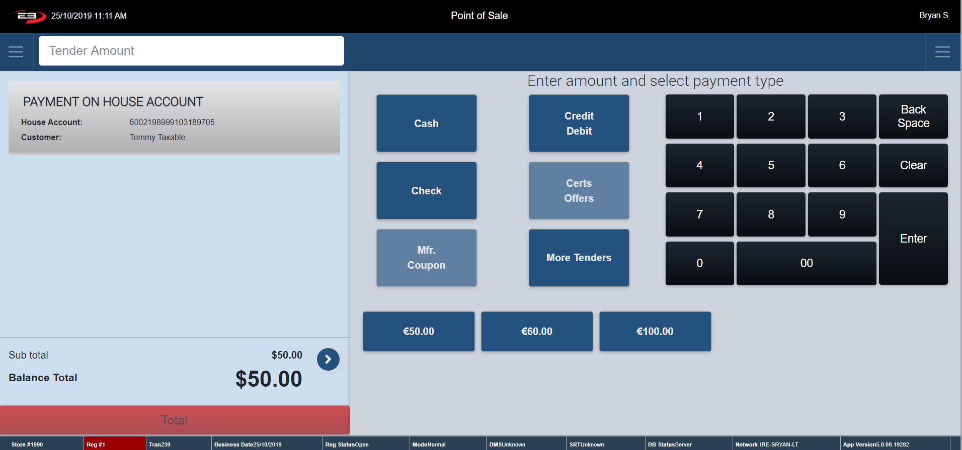 Click House Account – The register returns to the House Account Home Screen.