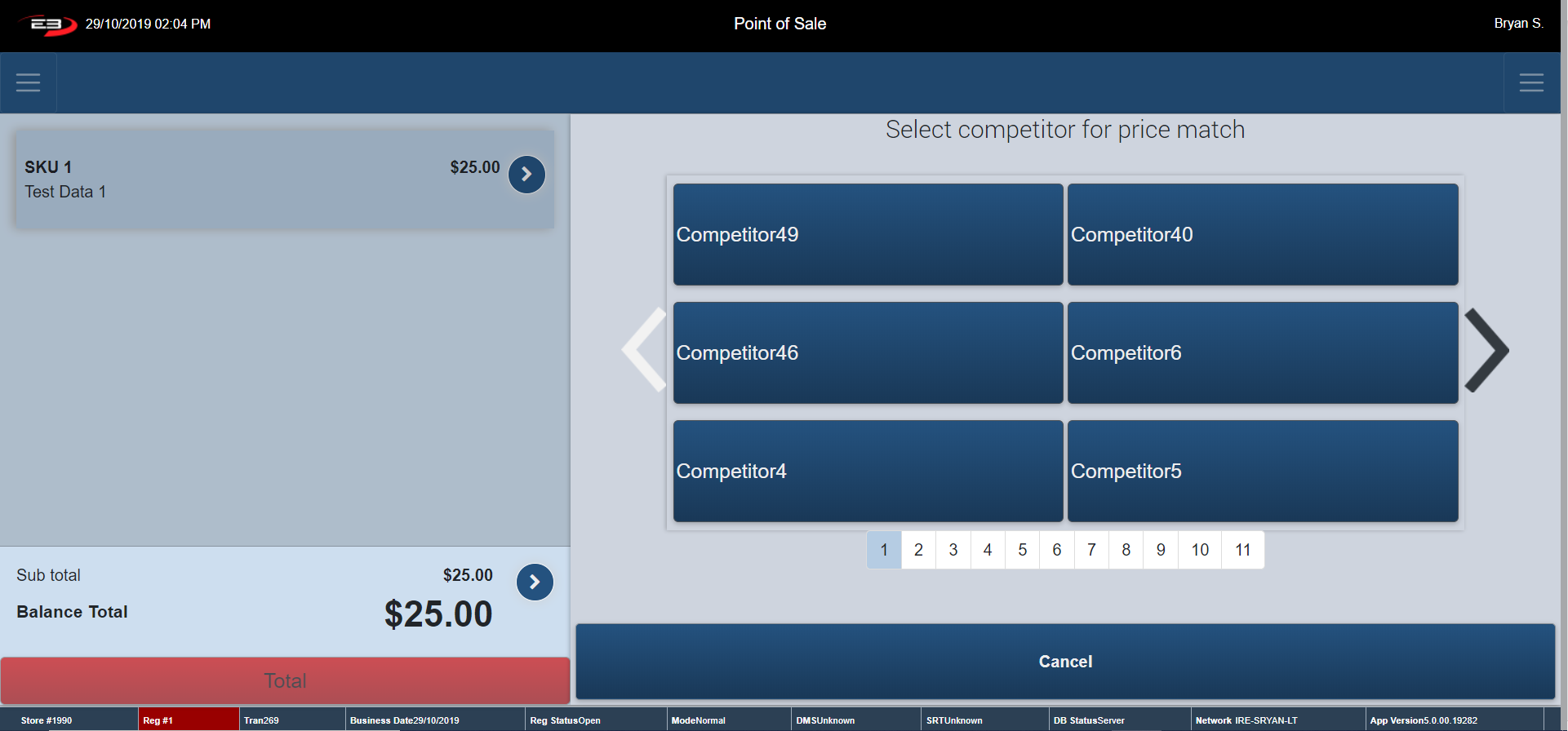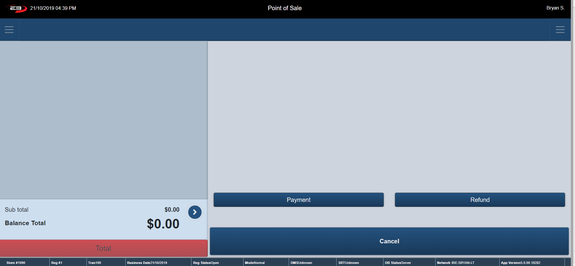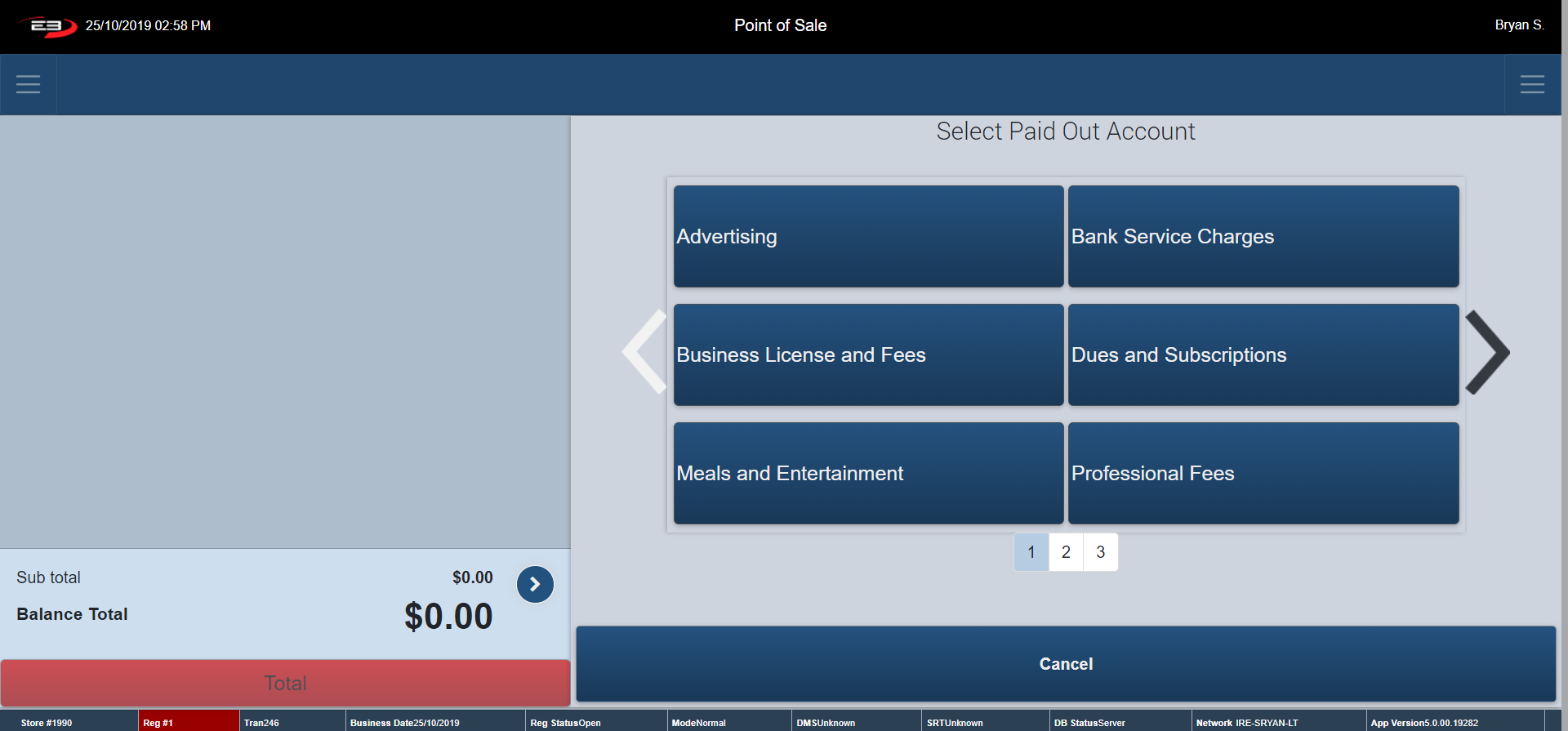 Click Cancel – the register returns to the Tender Type Option Screen.