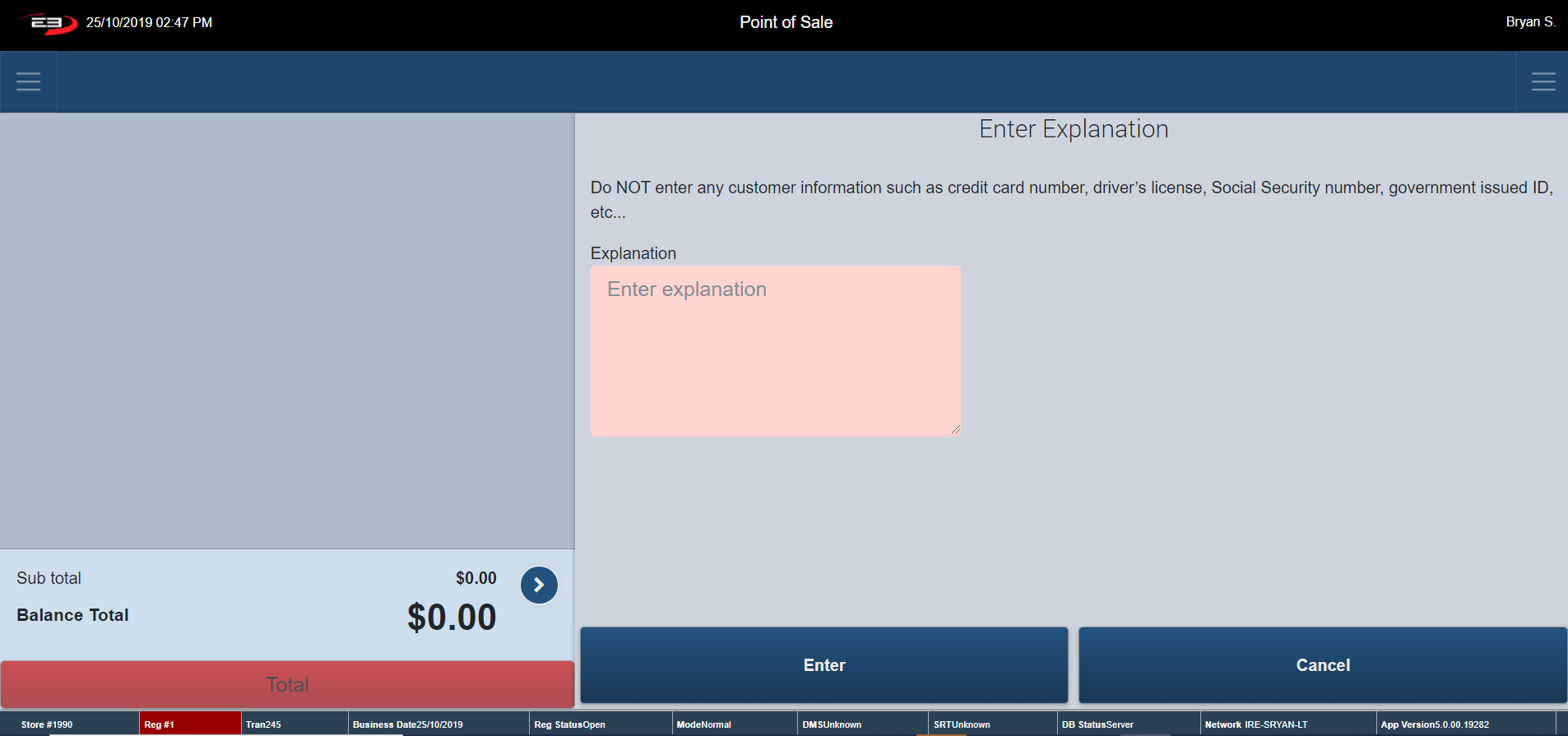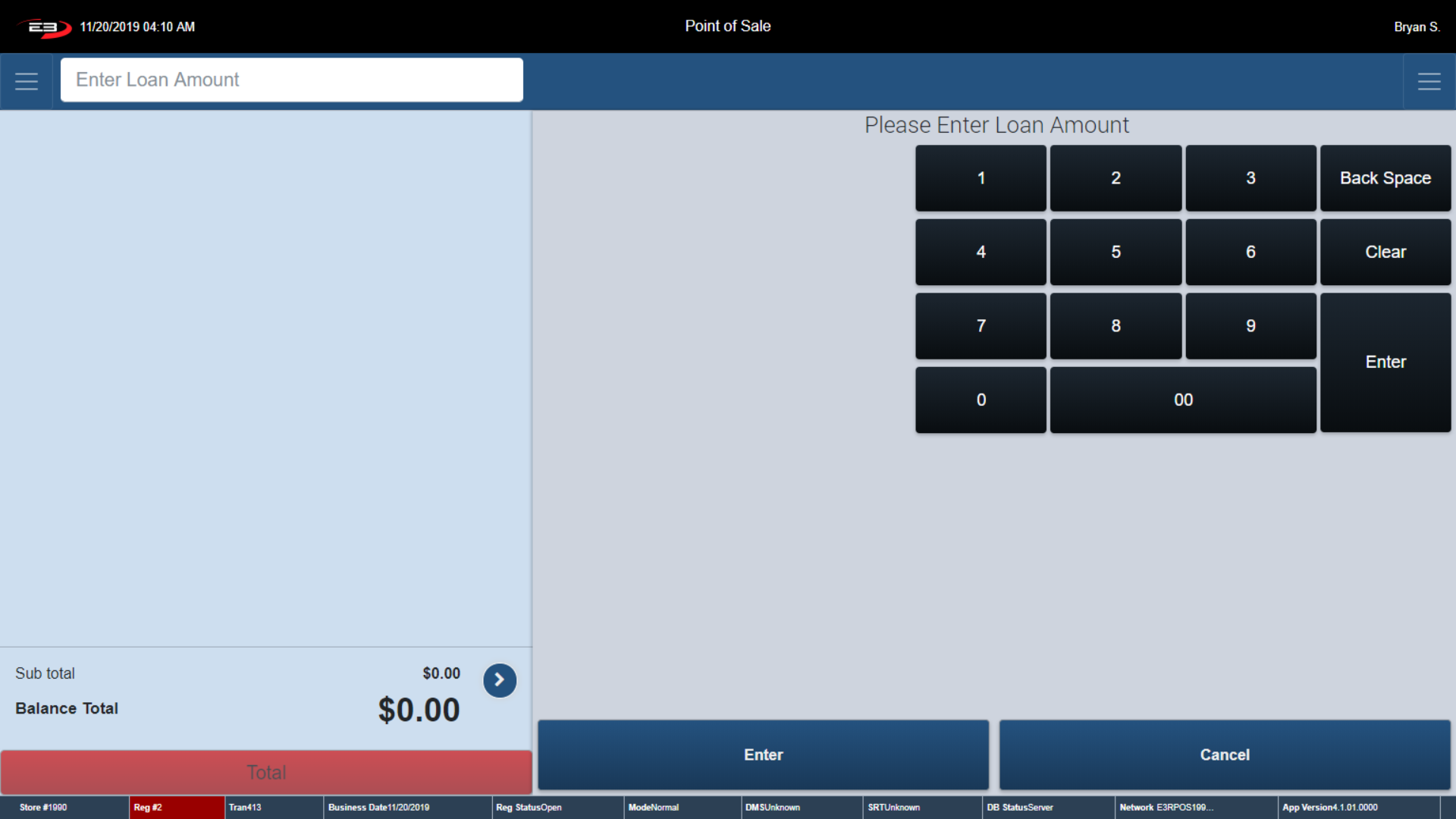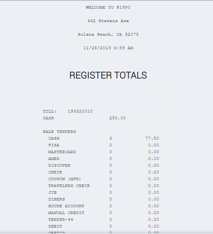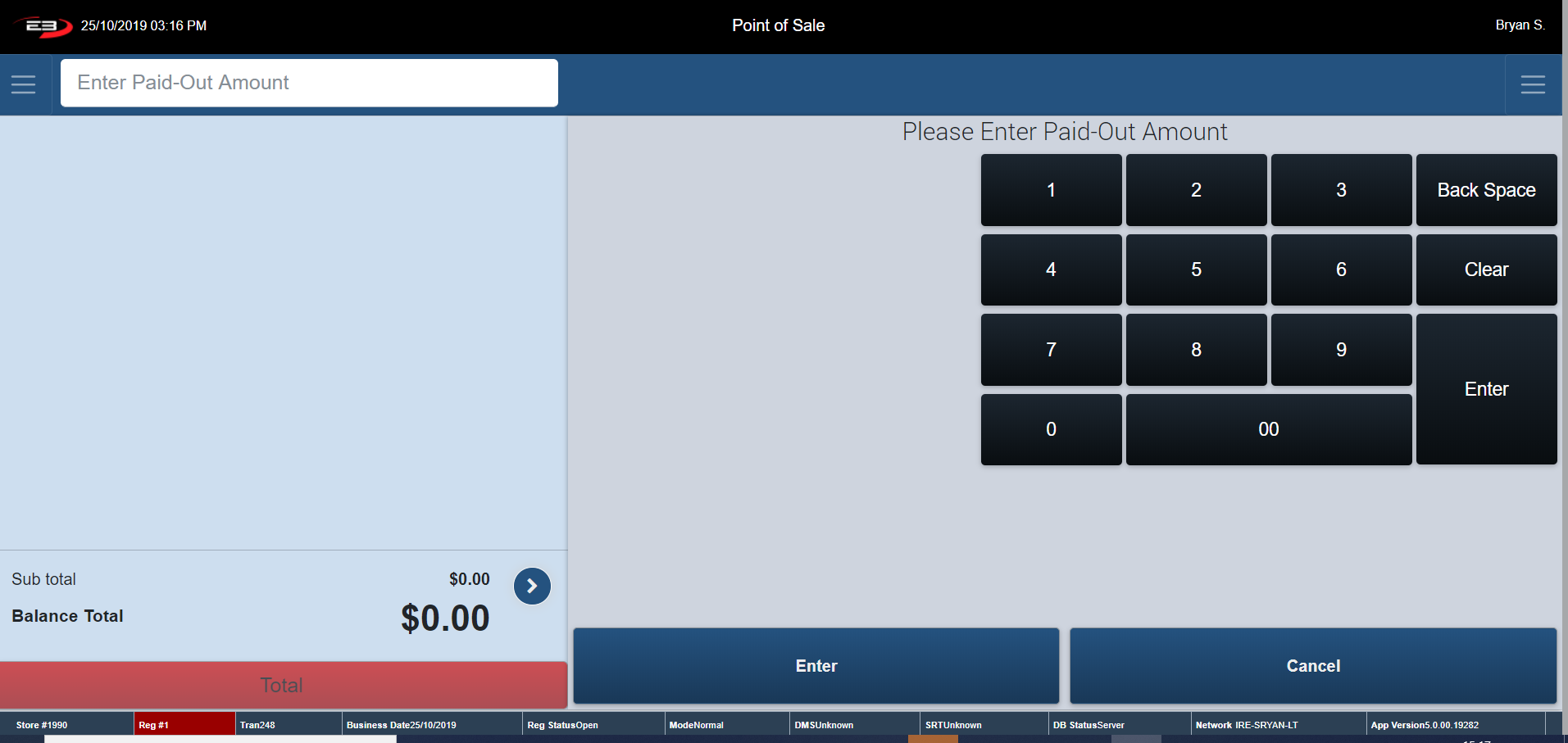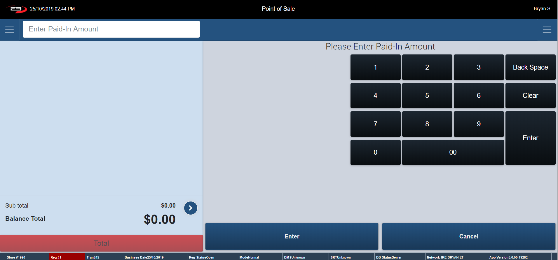 Type in your Starting Till Balance and click Enter to continue.