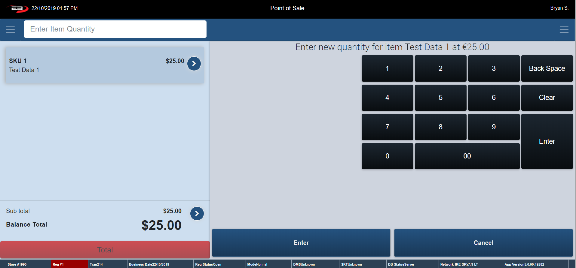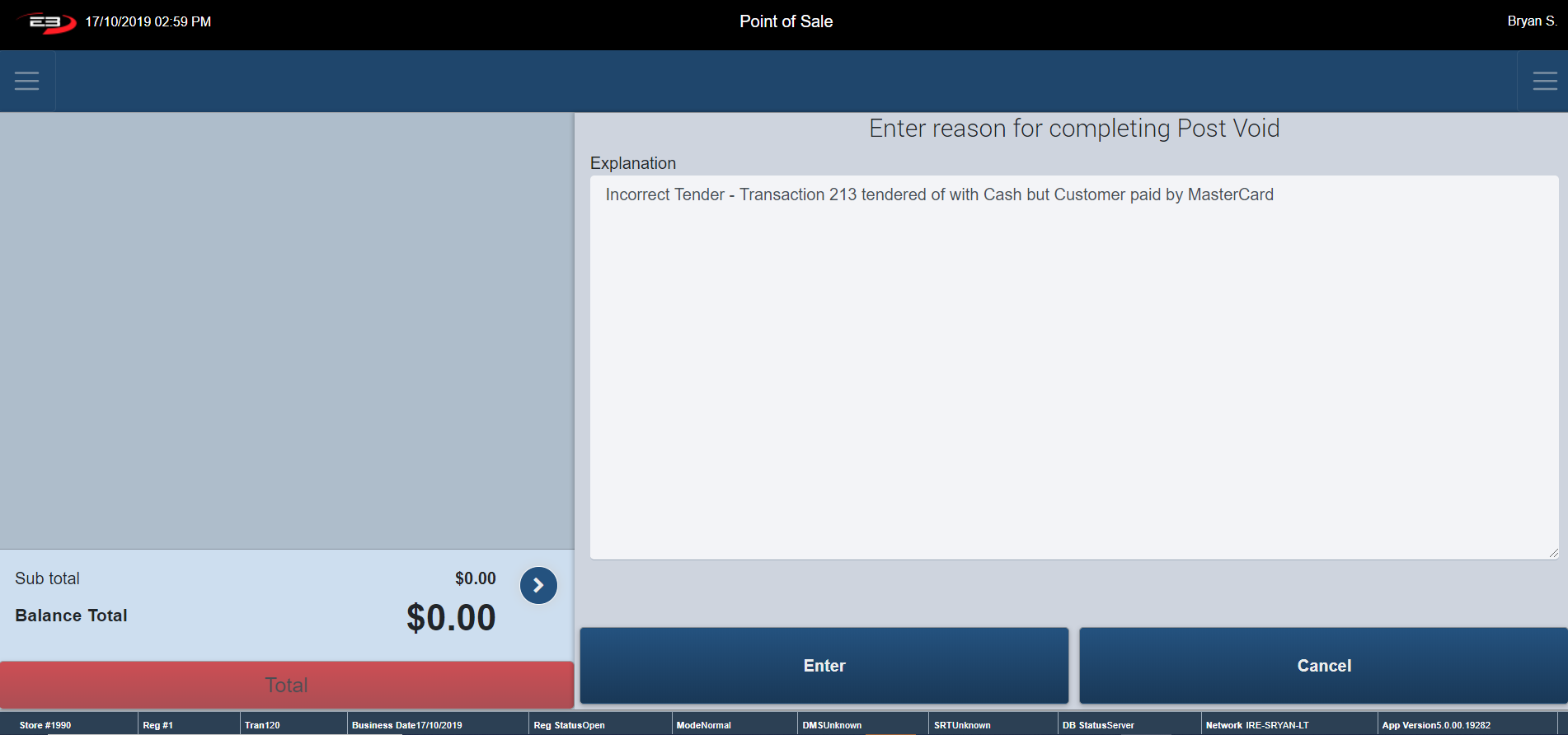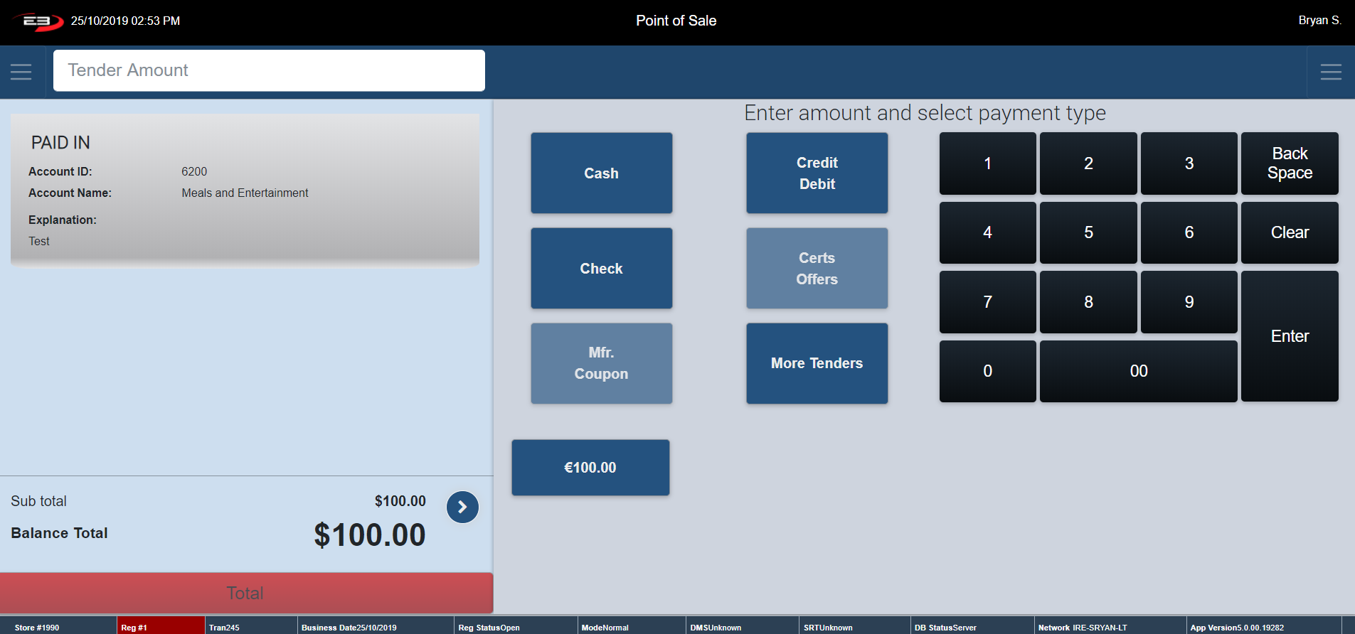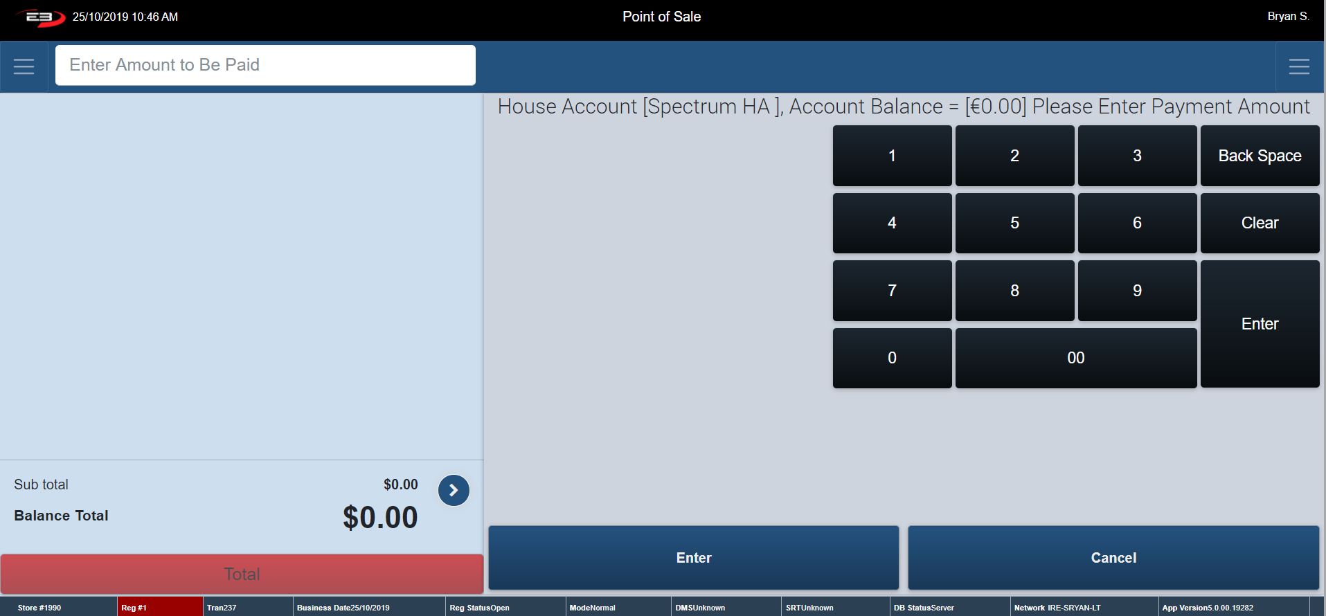 Type in your Starting Till Balance and click Enter to continue.