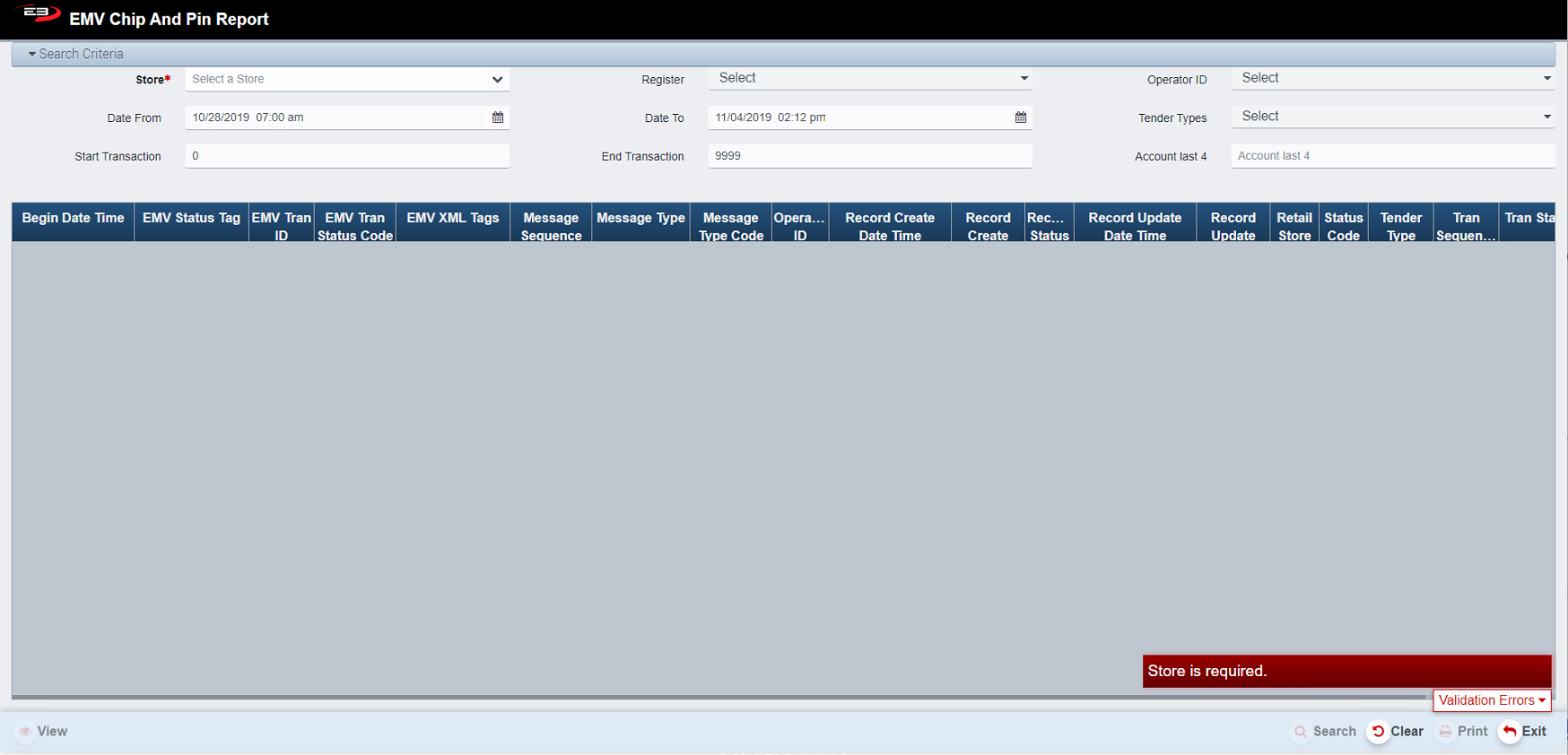 Click Clear to clear any results and to reset the search criteria back to their default values.