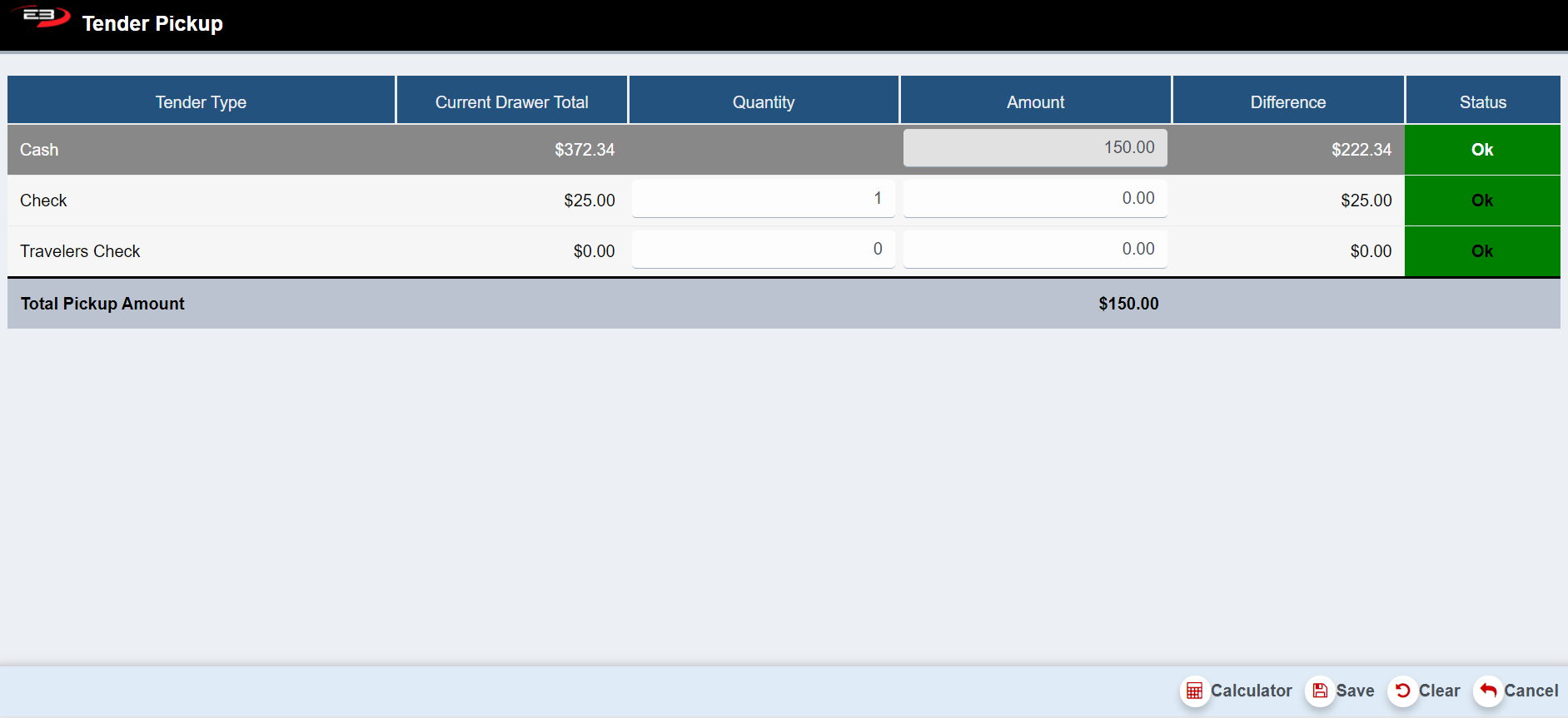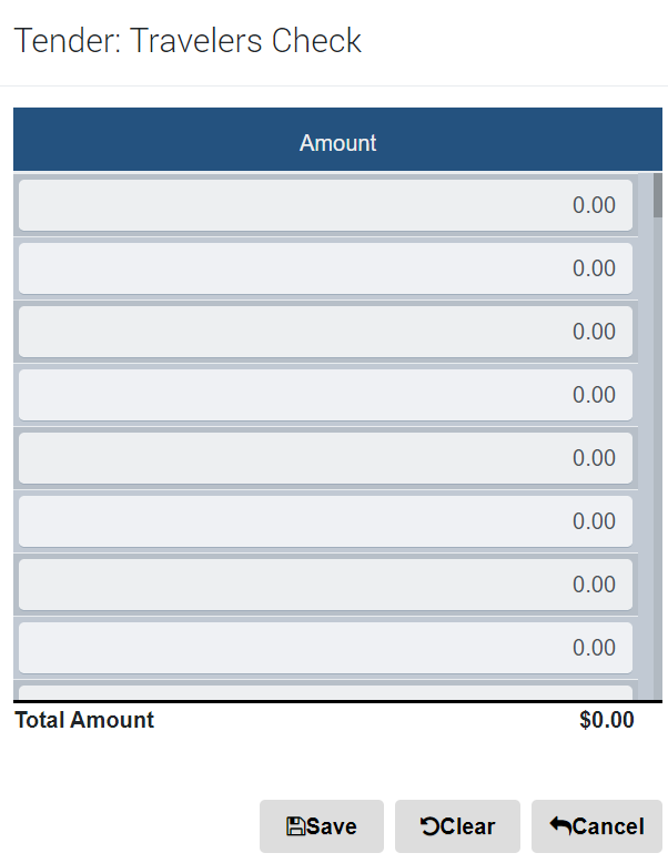 Enter the total amount of all traveler checks present and click Travelers Check.