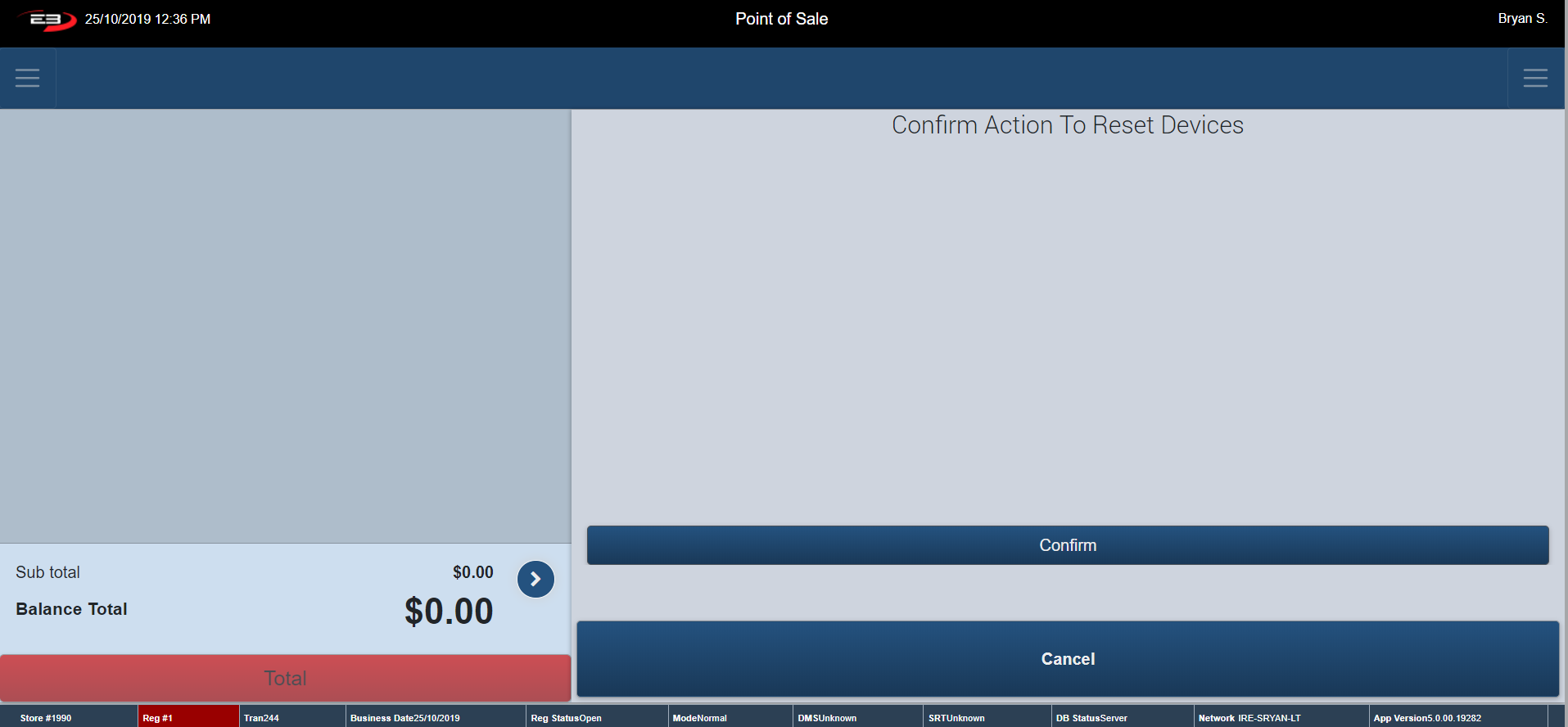 A confirmation dialog appears, if the amount is right click Enter, if not select Cancel and re-enter the amount.