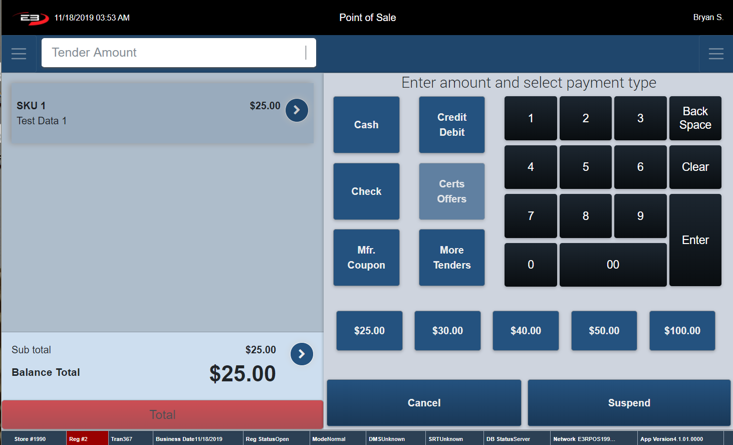 Below are the details for the different tender options. All examples below assume that the transaction is ready for payment.