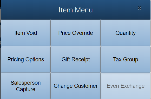 Once a product/service is rung through the register all the features in the transaction context menu are enabled.