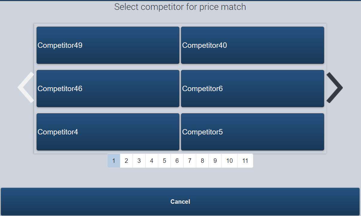 Choosing Price Match, the register asks you to Choose the Store which your Price Matching (All of the other options skip this step).