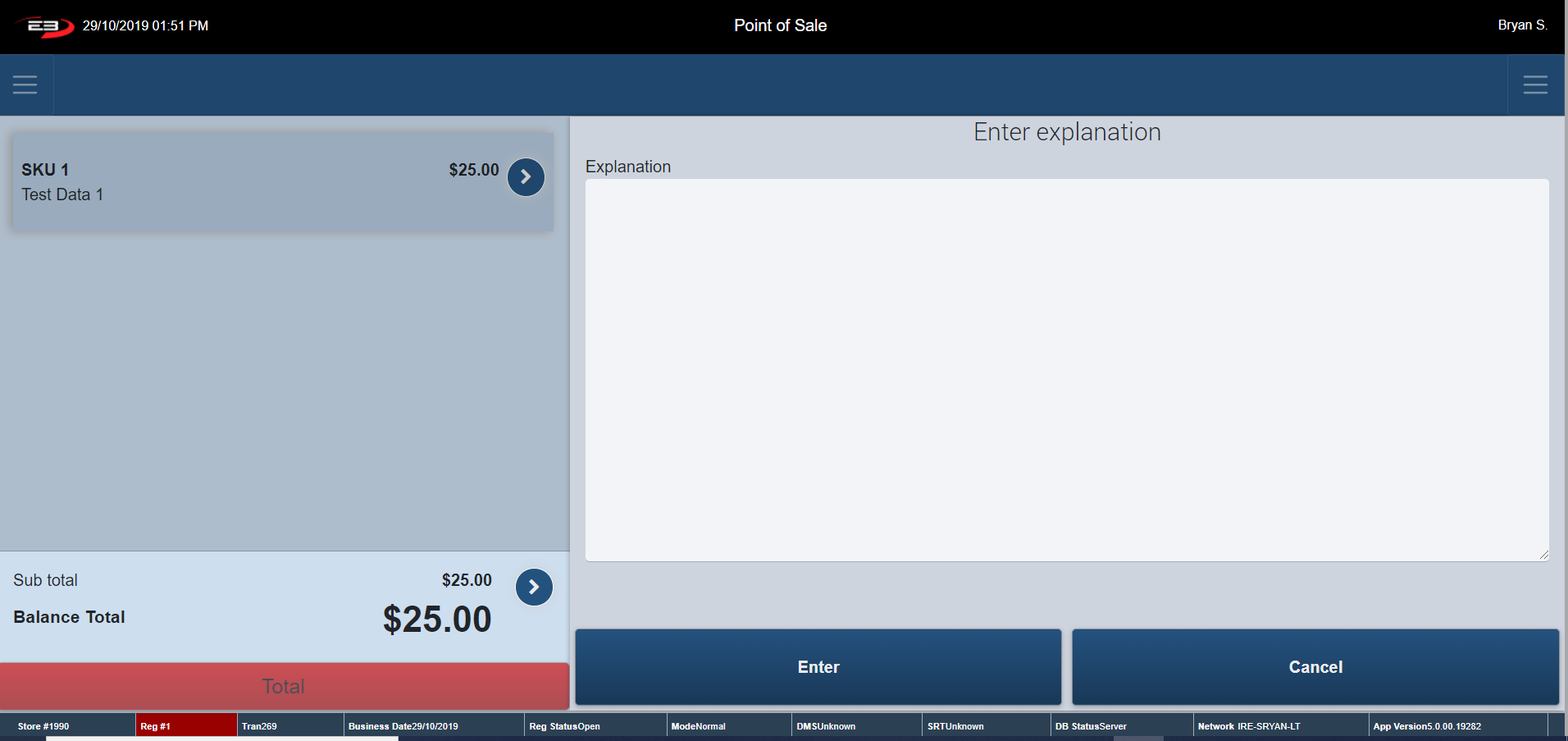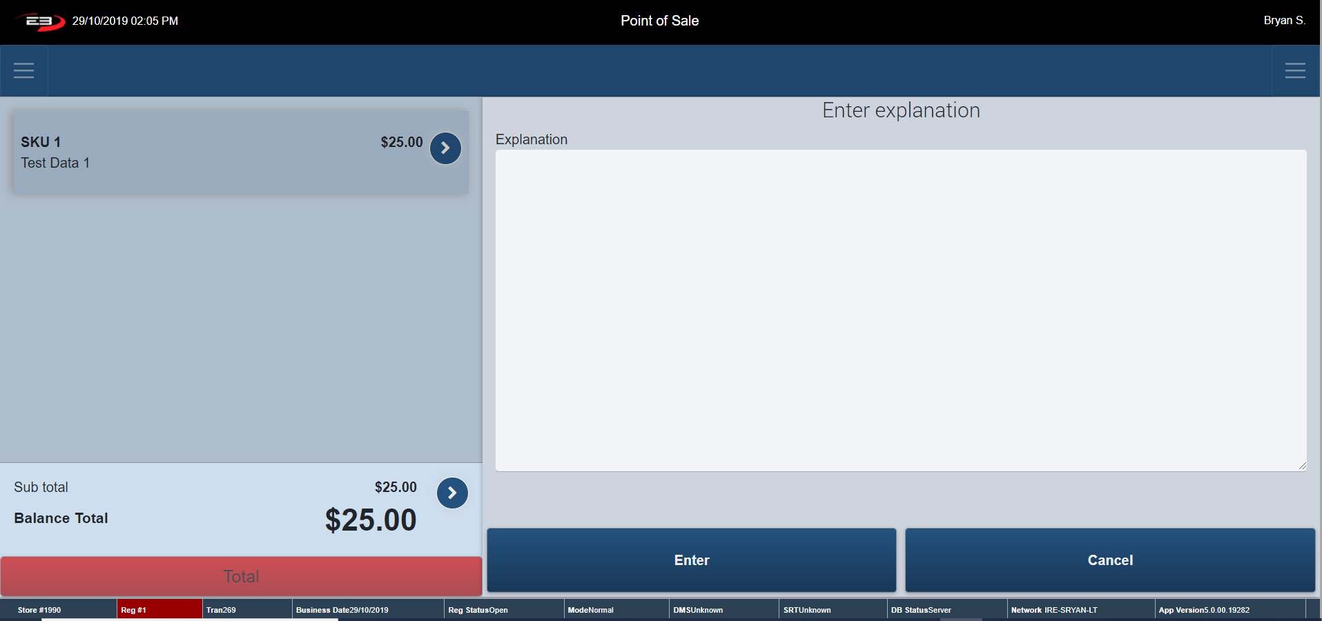 Once the Item Discount Reason is selected, the register goes to an Explanation Screen.