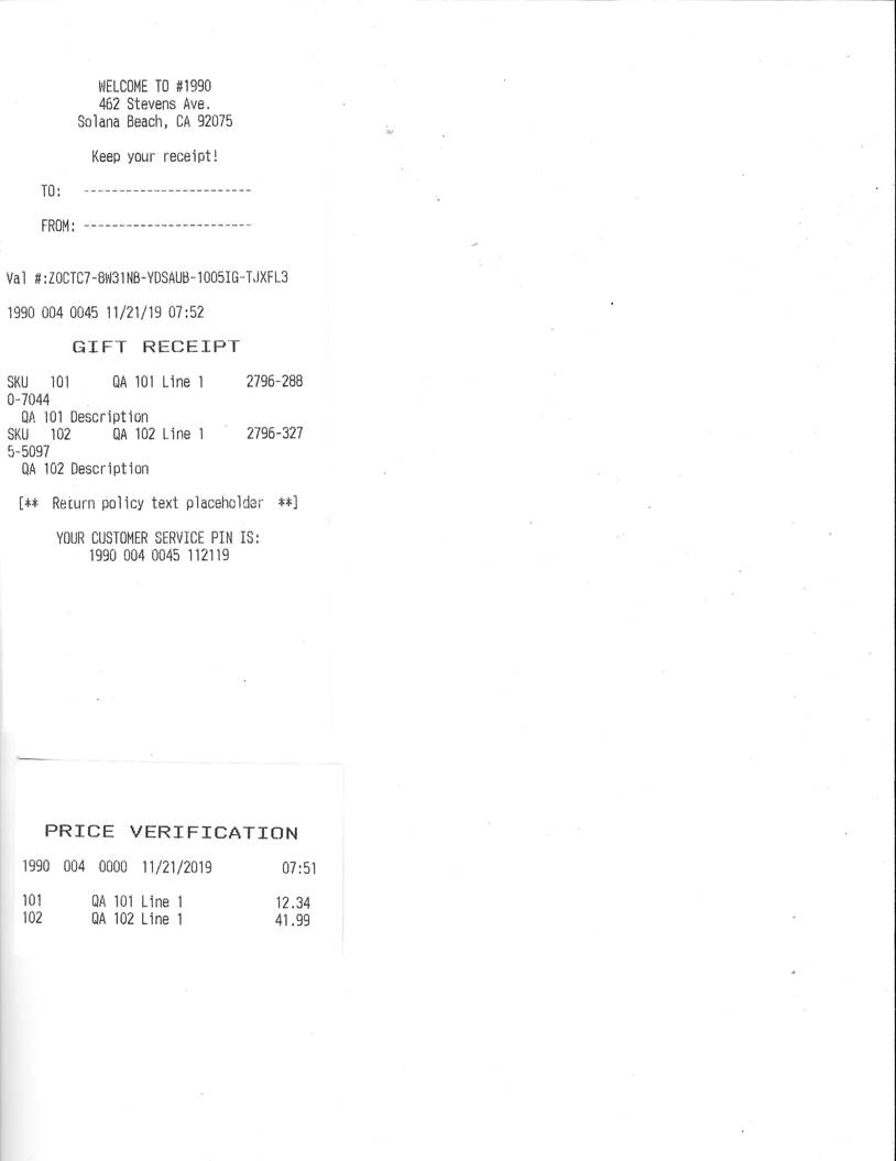 Below is a sample Gift Receipt – Note: no prices are displayed on the receipt.