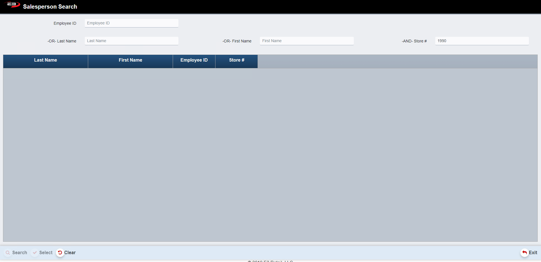 If you do not have the Salespersons ID, click Search to search for the Employee. A screen like the one shown below appears.
