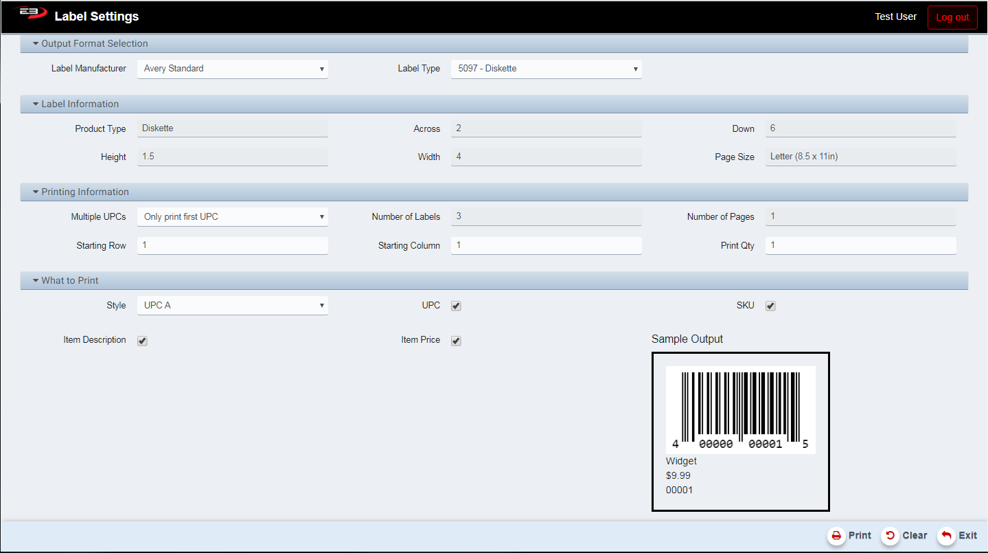 Select a Label Manufacturer and Type from the drop-lists in the Output Format Selection section**.**