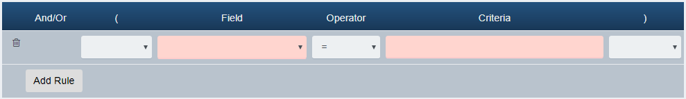 | Field | Operator | Criteria examples |