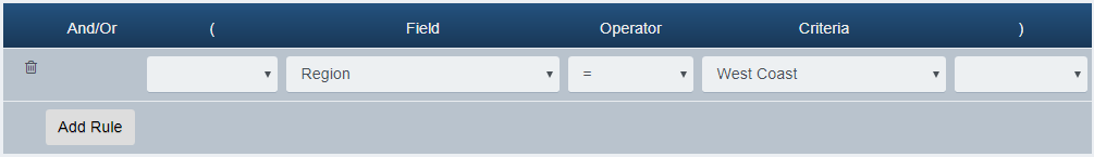 Select West Coast for the Criteria to match all stores whose Region is West Coast.