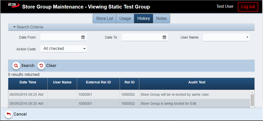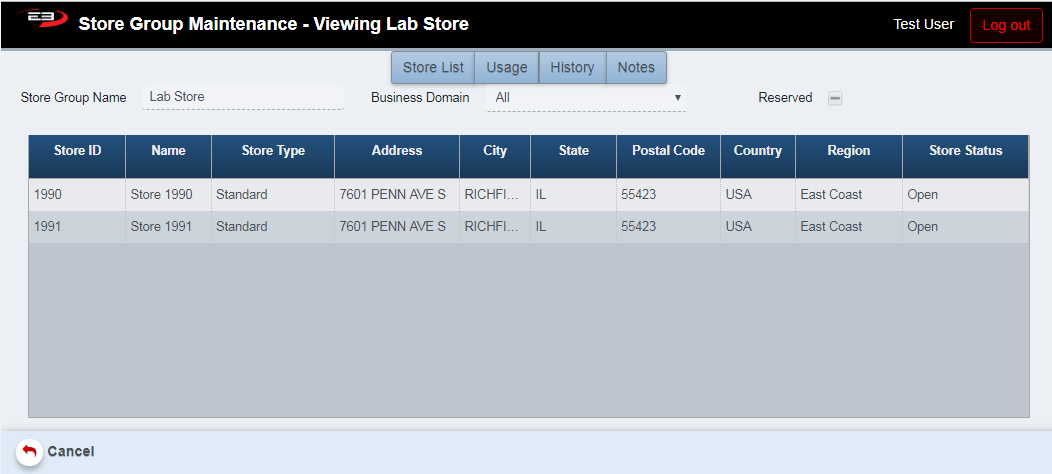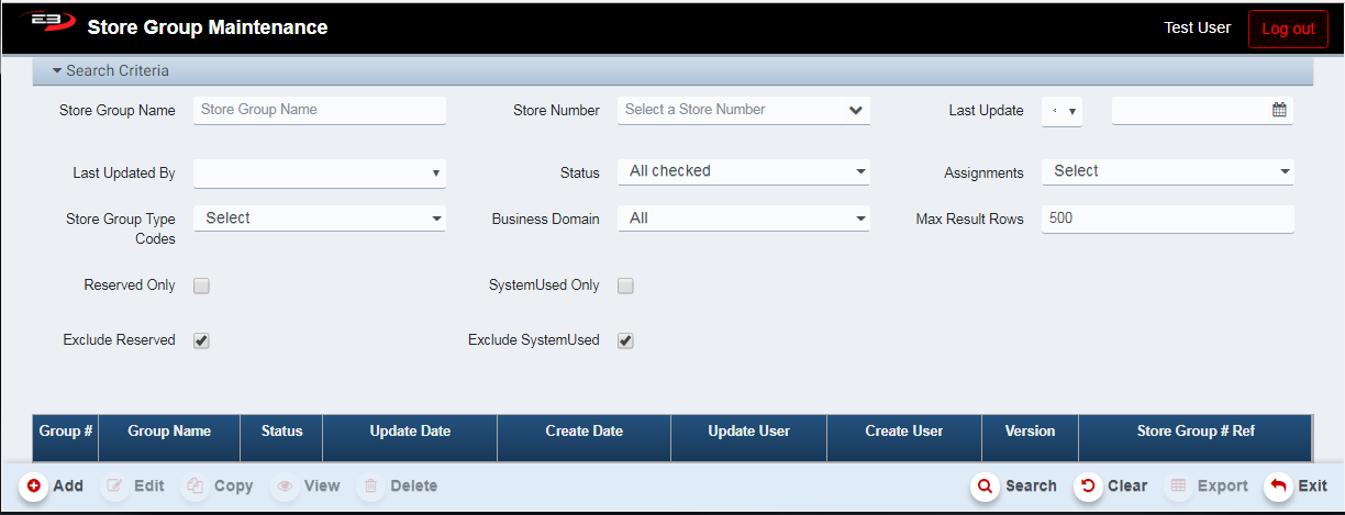 The View function allows the user to view either type of store group in read-only mode (can’t be edited).