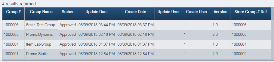 Store Number returns any group that contains the specified store.