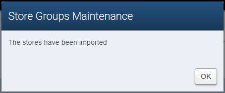 A dialog appears indicating that the selected stores have been imported to the group.