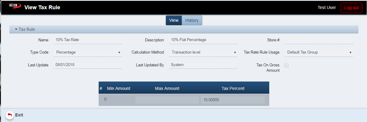 The BackOffice system is seeded with default Tax Rules. If you don’t find the Tax Rule that meets your requirements, please contact the HelpDesk and a new Tax Rule will be created.