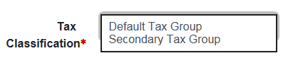 Selecting a Tax Classification will default certain fields. In the example below, the Default Tax Group classification was selected by the user:
