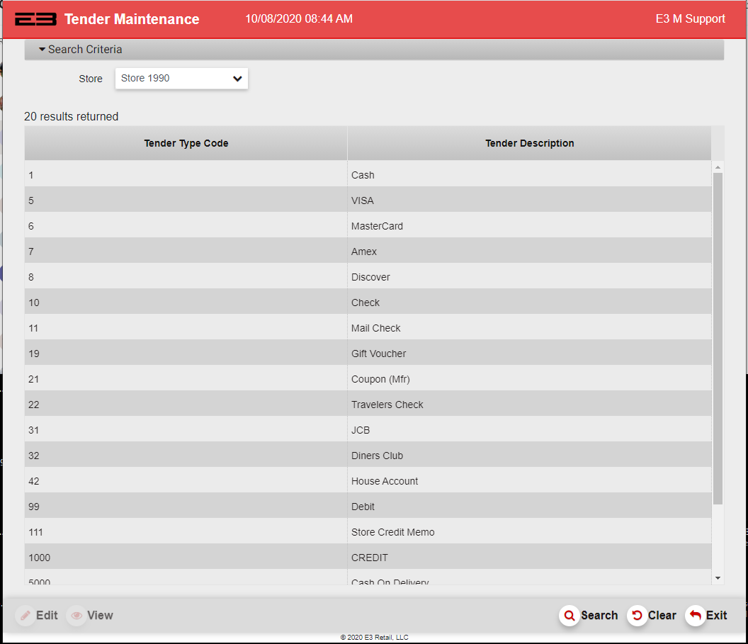 Click Clear to clear the selected store and tender options if multiple store are accessible.