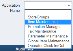 An Application Name can be selected from a dropdown menu to limit results to a single back office application.