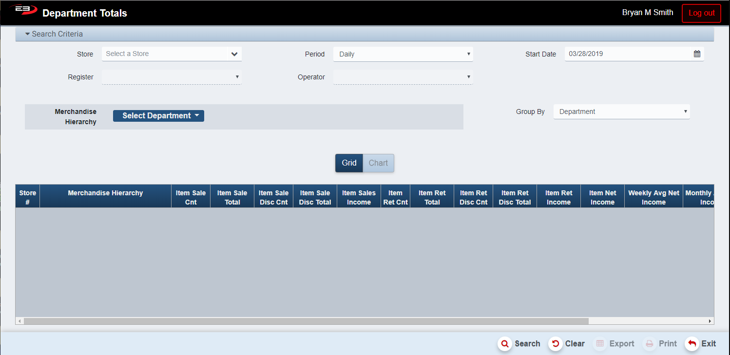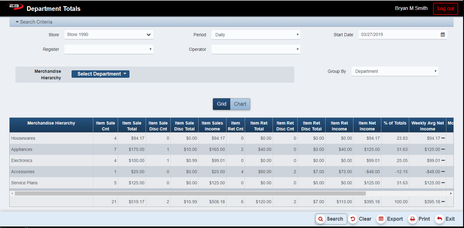 Click Search, the results will display like the following; this is data from a single store:
