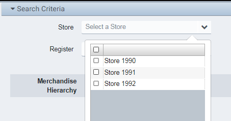 The Register search filter limits the results to those from the specified register, and is disabled if more than one store is selected. Not selecting a register means “all registers that are visible”.