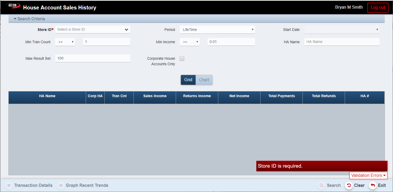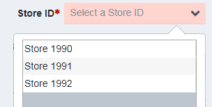 The user must select a Store ID from the list, when a store is selected the Search button is enabled.