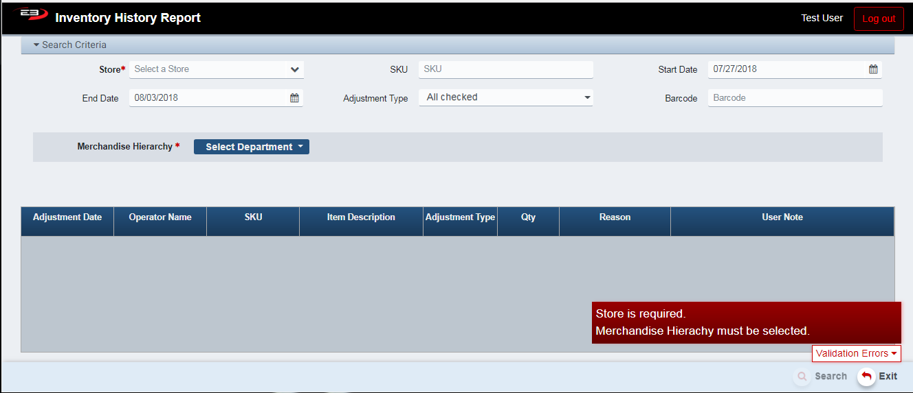 Select the Merchandise Hierarchy to search, this is required.