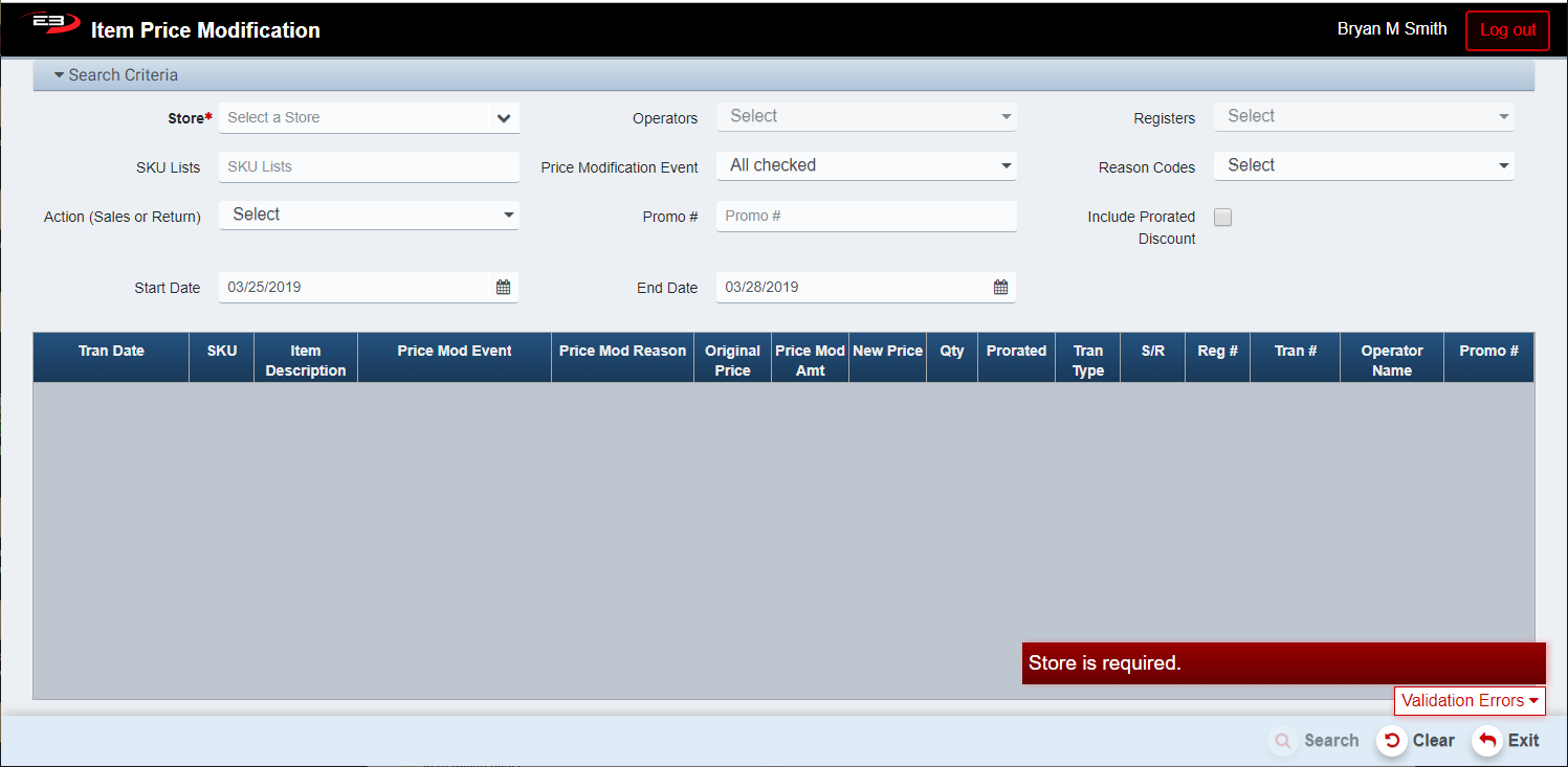 Once the store has been set along with other search criteria, click Search and the results will appear like this:
